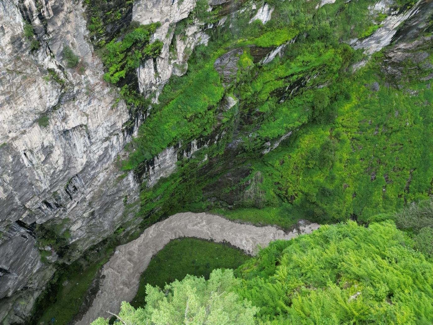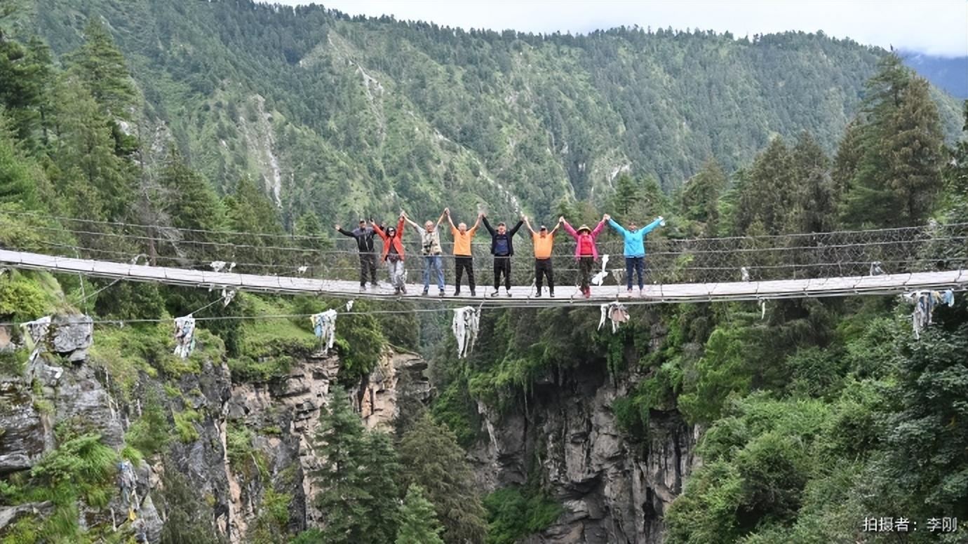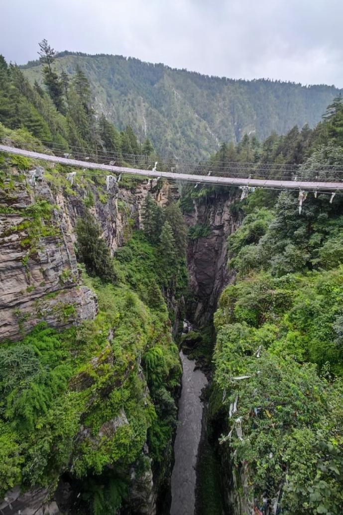 漫步橋上,但見谷底水流湍急、兩岸山峯凌厲,刀削般絕壁上古樹參天。站在橋頭還能遙望尼泊爾,方知山河壯闊、國界如線…