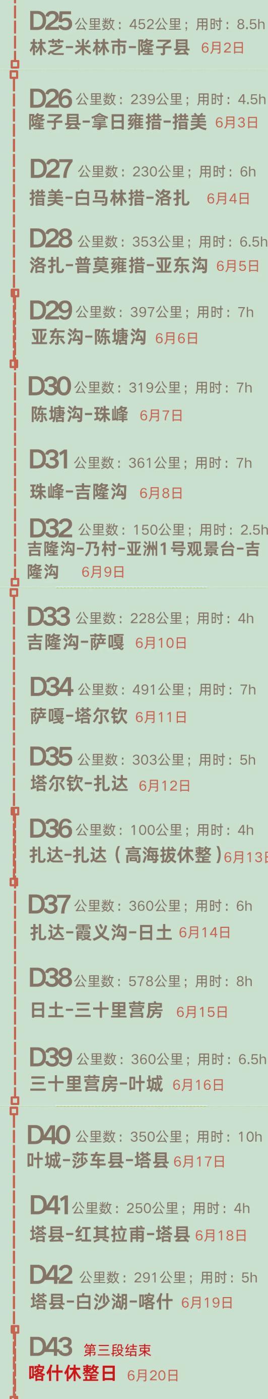 日喀則市—希夏邦馬峯觀景臺—佩枯措—吉隆縣城—乃村田園風光—帕巴寺—吉甫大峽谷—朗吉錯—熱索橋(中尼邊境)。