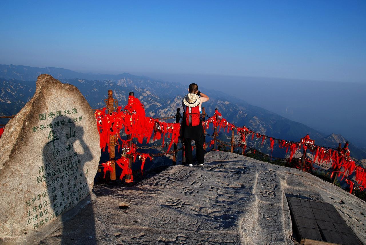 華山最高峯南峯的海拔爲2154.9米,從玉泉院到北峯的距離爲7公里,山路比較陡峭,累計爬升高度爲1500米,華山明顯比黃山更陡峭,爬升距離更大,體力消耗更明顯。