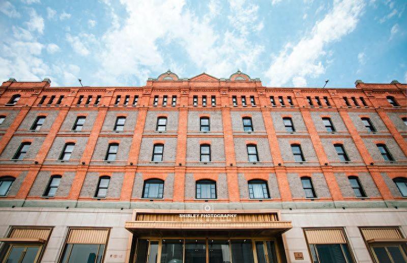 世界會客廳的建築羣由三棟樓組成,其中2號樓和3號樓始建於1902-1903年,以清水青磚爲外立面,過去是日本郵船株式會社的倉庫。建造會客廳時,原有老建築的外立面遵循歷史原貌,採用了保護性重建的技術,最大限度保留了老建築的原汁原味;1號樓則是融合古典與現代風格的創新之作。三幢樓並排中間有過道相連,形成一個磅礴壯觀的建築羣。