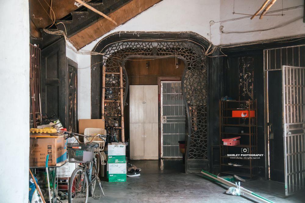 內部所有木料均爲上乘檀木,100多年來依然完好、沒有更換。頂棚爲30釐米原木大料成井字構架,保存至今;地板、部分門窗、樓梯等主要結構件也基本完好,這在木構建築中非常難得。這類建築的公共區域難免有私搭亂建,雜物堆放的現象,如果拋開這些干擾因素,想象一下建築原有的格局,還是十分規整雅緻的。