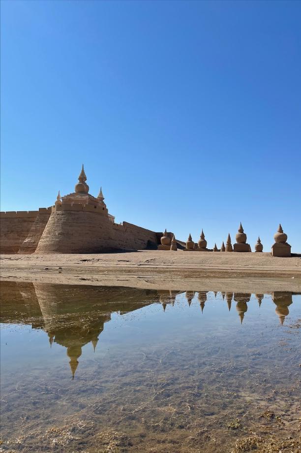 當沙丘、湖面、蘆葦蕩等萬物紛紛披上了霞光,