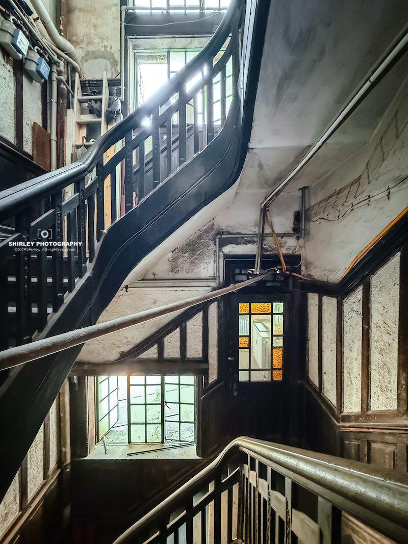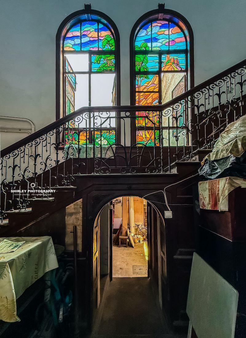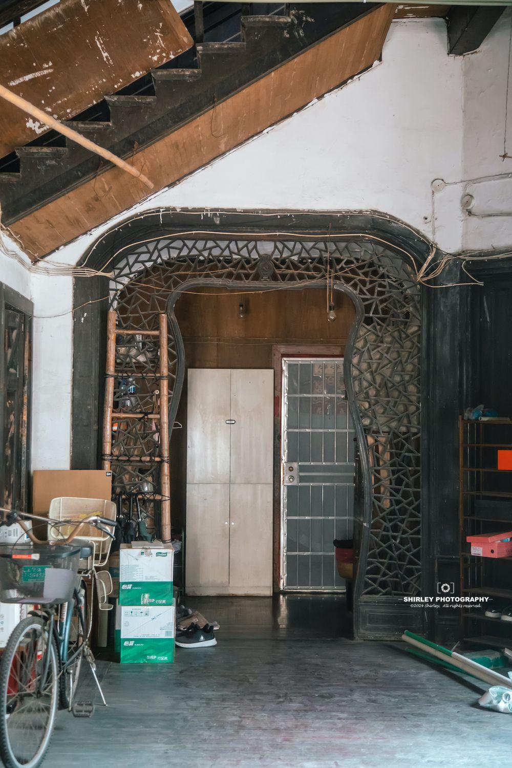 門廳的地面鋪有復古的小馬賽克地磚,內部的木質樓梯和彩色玻璃莊重典雅又不見鋪張,猜測過去的主人應是個講究人。想來與戴耕莘、郭氏兄弟這樣的名人商賈爲鄰的人,也絕非等閒之輩。