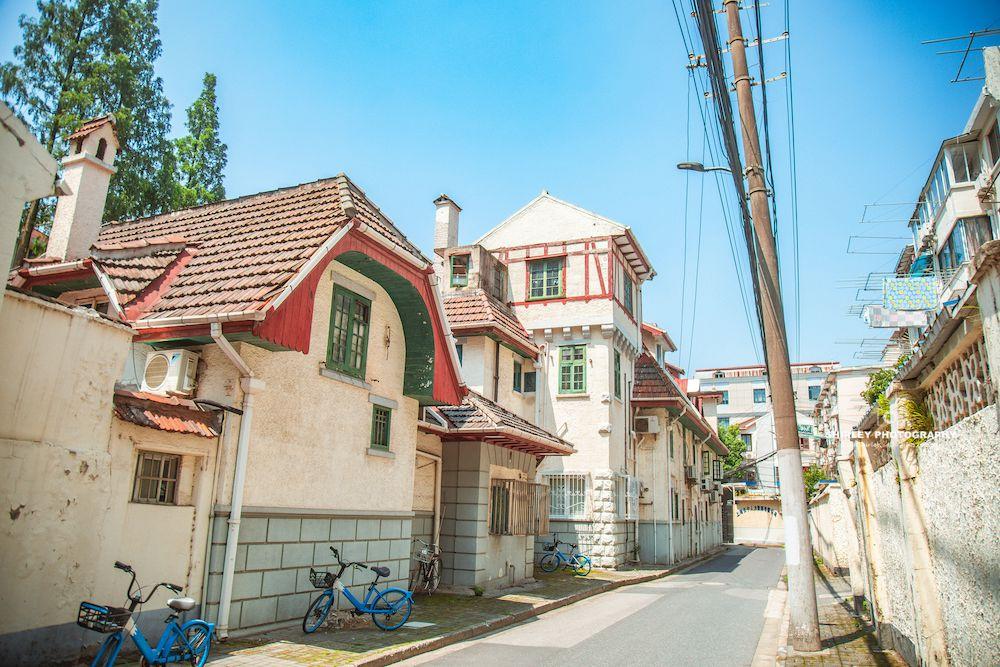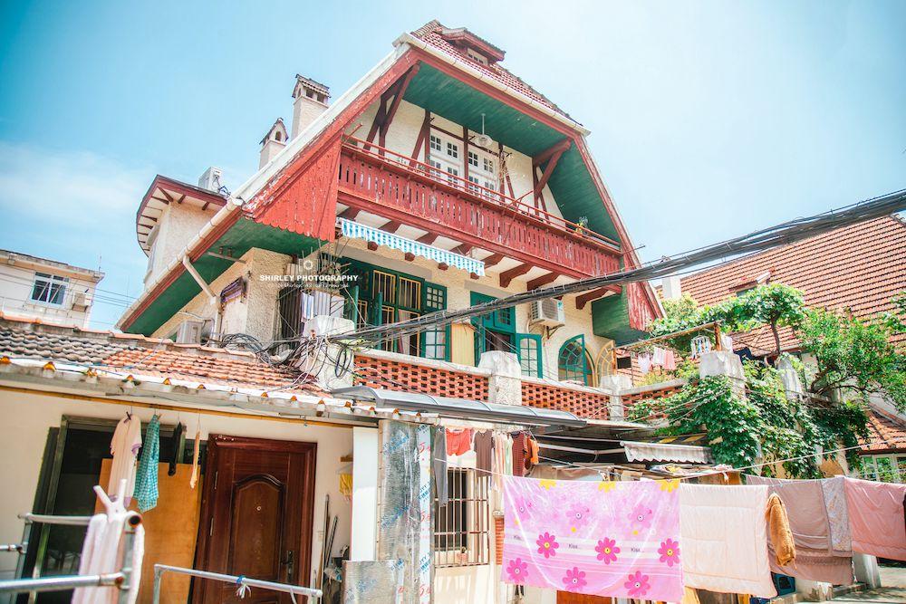 如果從江蘇路轉入利西路,第一映入眼簾的就是兩棟極具歐式風情的建築,綠色的窗臺與紅色的木筋組合在一起,就像一棟浪漫的童話小屋。這便是背靠利西路的郭氏住宅,當時人稱利西路大房子。郭氏即永安紡織、百貨集團公司的創始人郭樂、郭泉兩兄弟,郭氏家族創建的上海永安公司締造了環球百貨傳奇,現在永安百貨歷經百年,依舊開在人流如織的南京路步行街上。