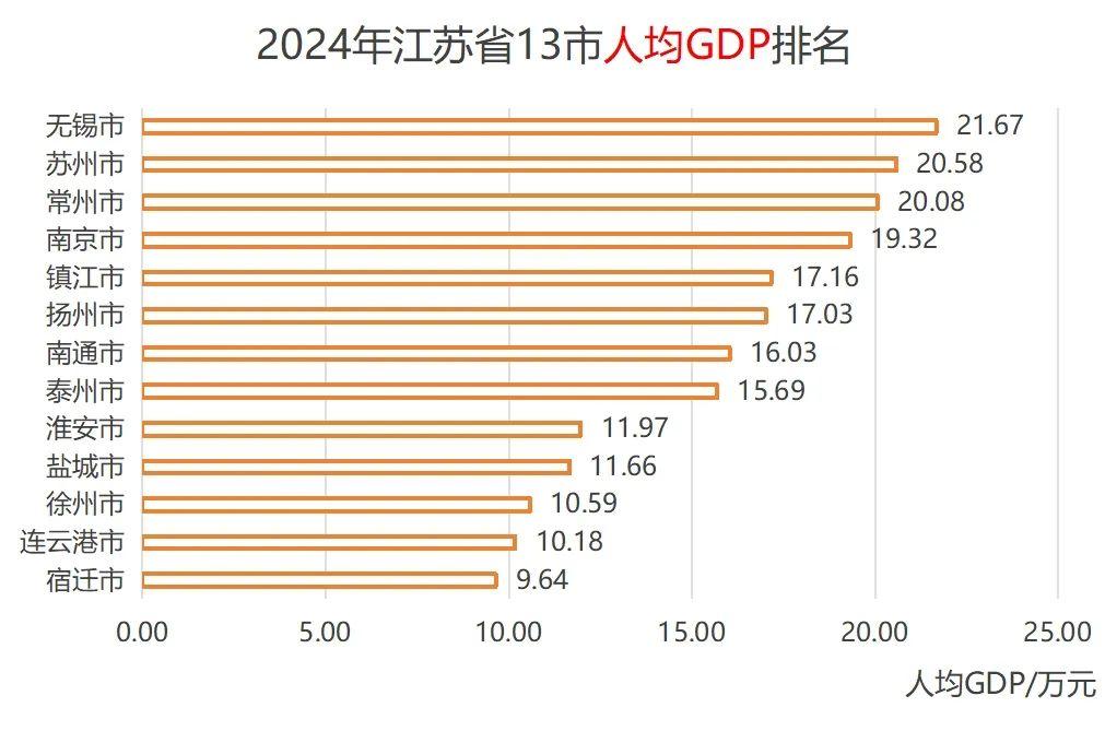 2024年江蘇省13市人均GDP全部超過全國平均水平