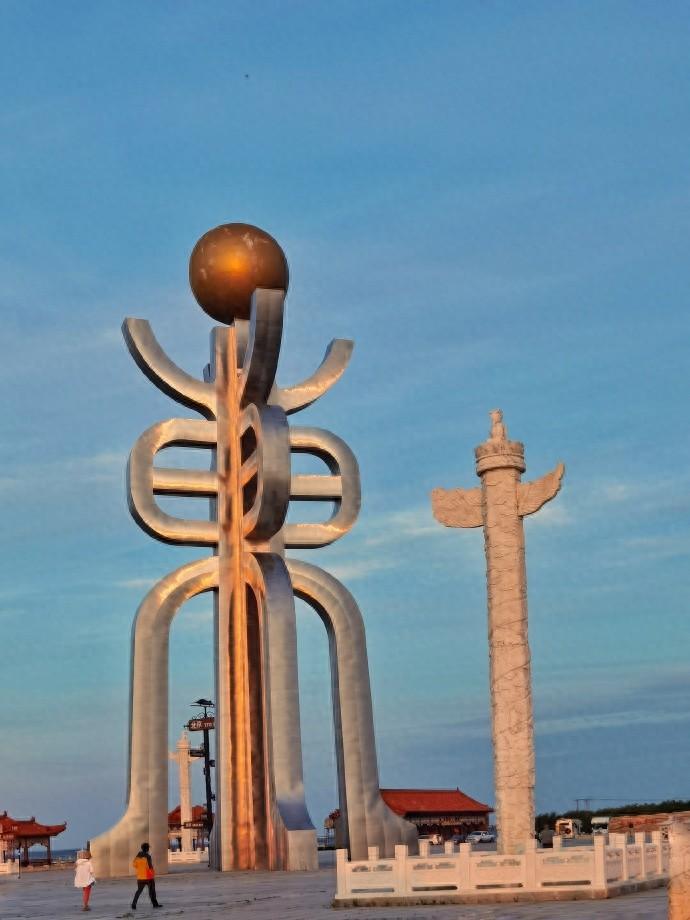 以“東”字爲造型的巨大雕塑高聳入雲,