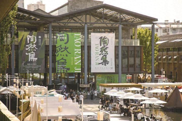 高聳的煙囪倒映在水面、紅磚瓦下爬滿藤蔓的廠房、轉角總會遇到造型別致的陶瓷雕塑……陶溪川文化創意園由1958年建廠的宇宙瓷廠舊址改建而成,如今是景德鎮旅遊人氣最高的園區之一,嫁接了博物館、美術館、瓷器店等,用新業態復活工業遺蹟,將古老與年輕融爲一體。不少遊客慕名而來,漫步打卡。