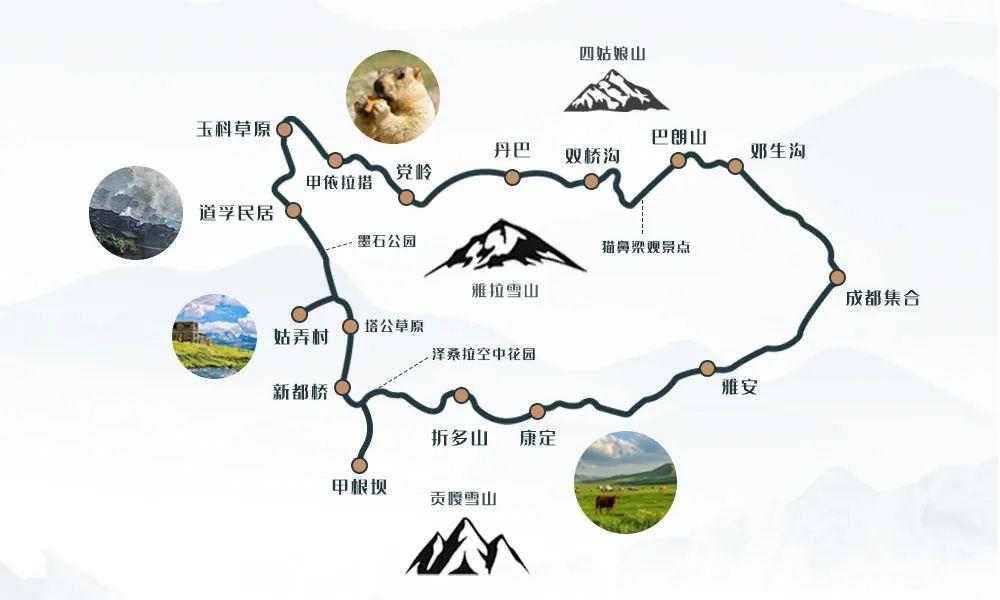 早上起來驅車出發前往【甲根壩鎮】,去往【桑澤拉空中花園】,欣賞【俄色花海】怒放的景色,有幸還可一睹蜀山之王【貢嘎雪山】,在此留下你的人生照片,後驅車開始返程,經摺多山,往康定上【雅康高速】,過雅安返回成都,結束愉快的行程。