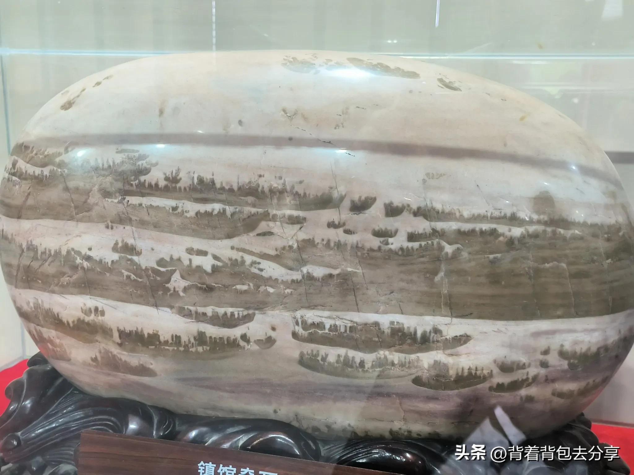 寶船廠遺址出土文物展覽館-長江三峽卵石,被譽爲寶船廠遺址的鎮館之寶,這塊卵石經幾千萬年乃至上億年江水沖刷自然形成,重約100餘公斤,而上面的圖案,彷彿再現了當年鄭和下西洋船隊待令出發的景象,這種壯觀場景象也實屬罕見