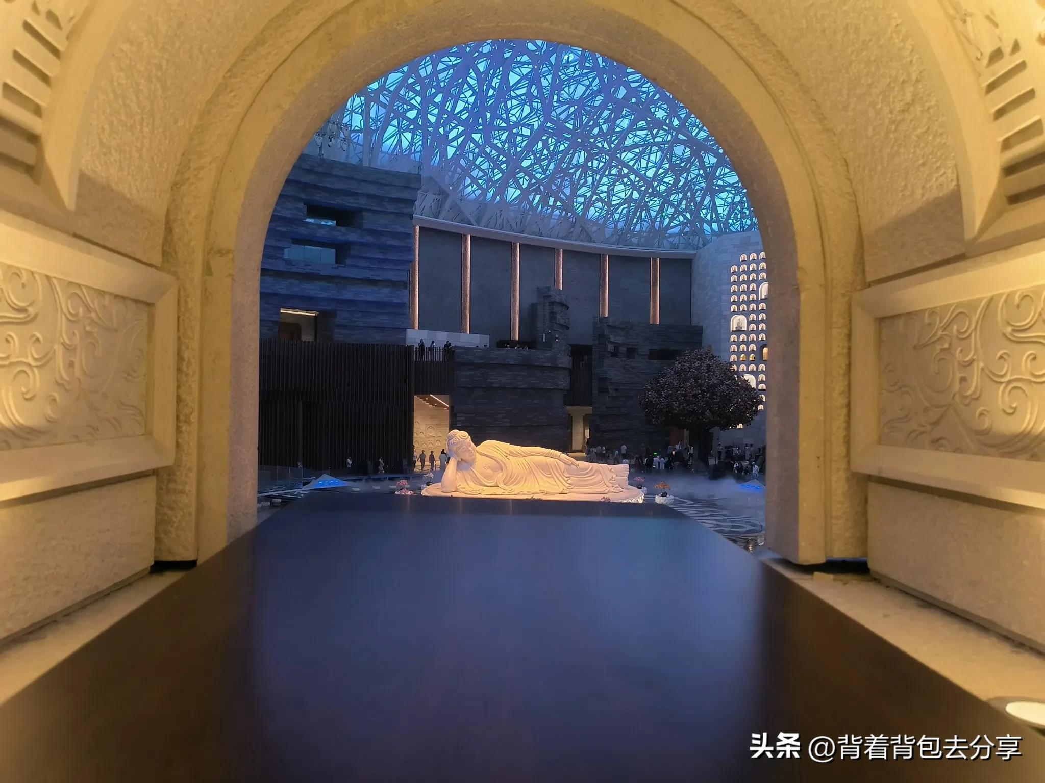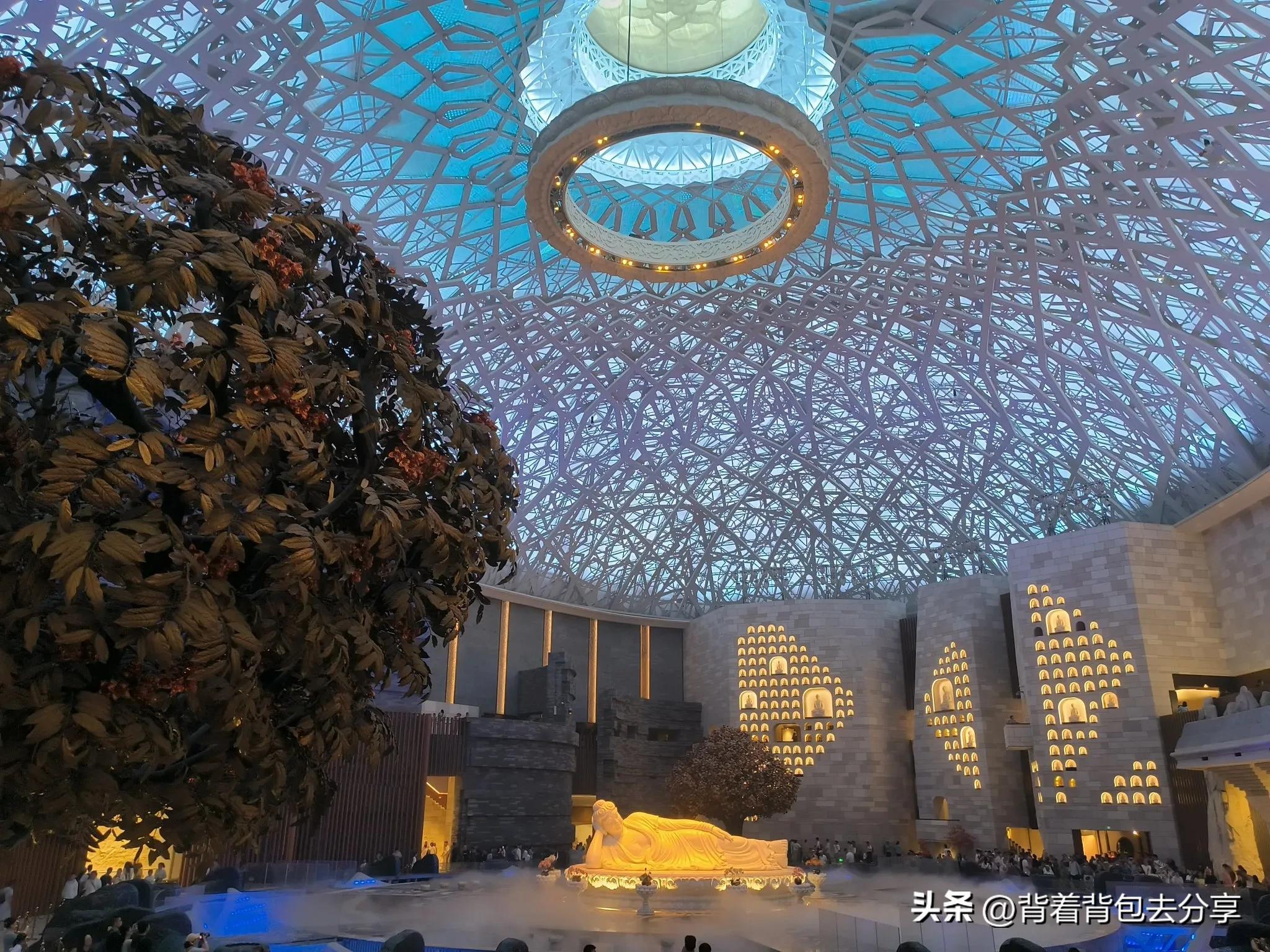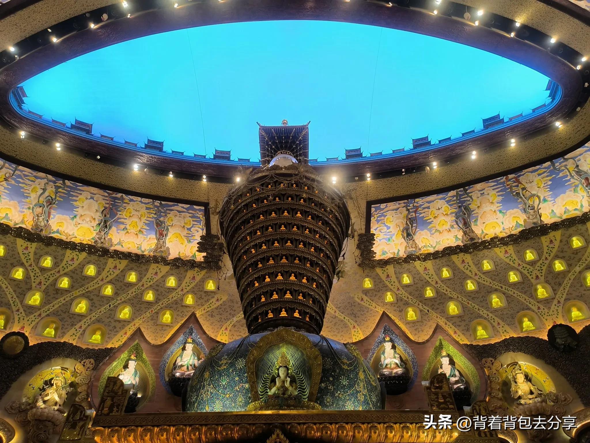 佛頂宮,耗資40億打造的佛教聖地,建築宏偉,內部有地宮六層,藏有千年佛教藝術瑰寶,而佛頂宮設計靈感,來源於佛陀在一棵菩提樹下大悟成佛的故事,地形塑造向心內凹,以螺旋石陣暗喻佛光與宇宙的無窮