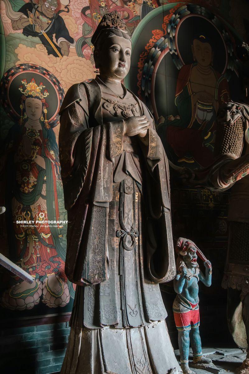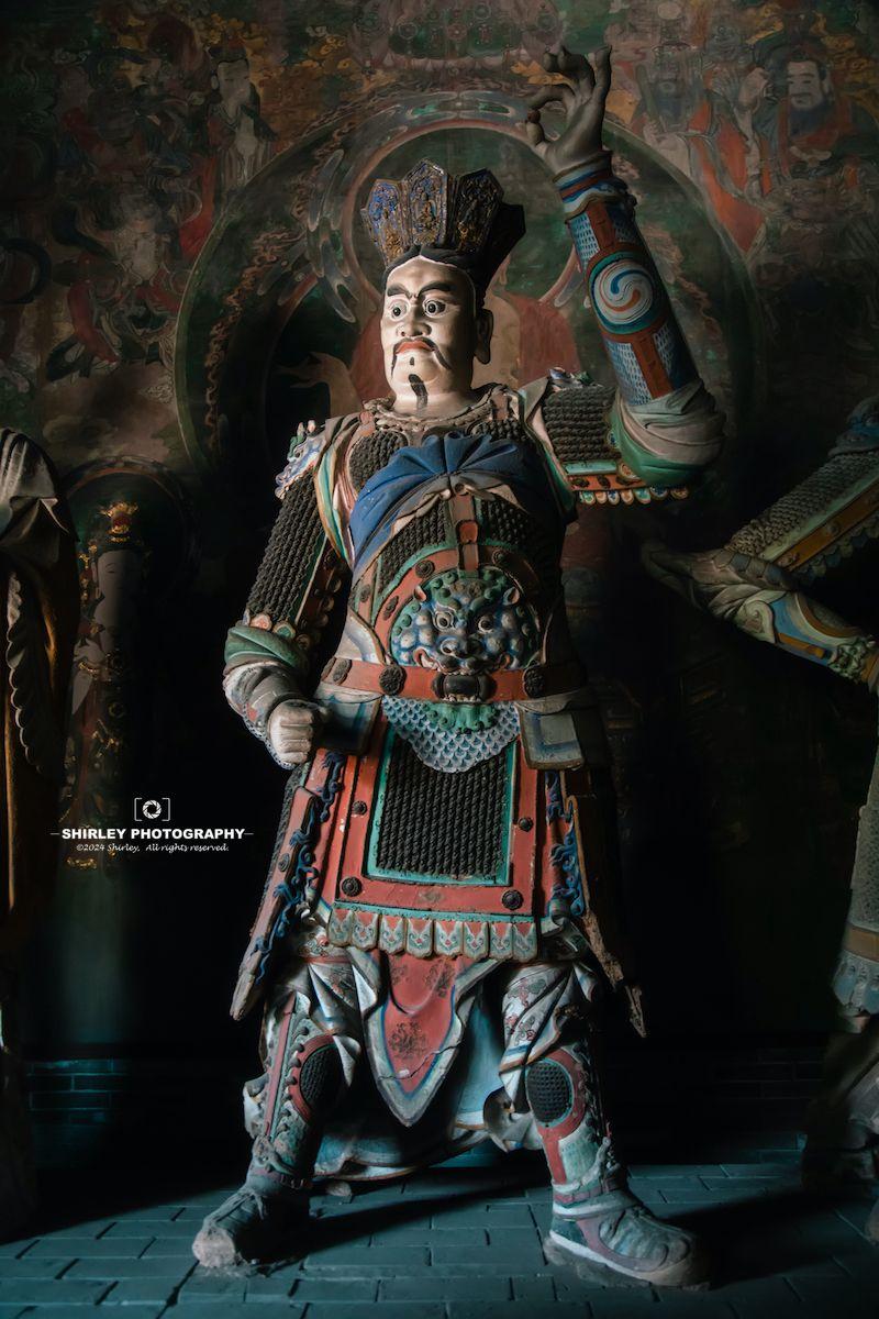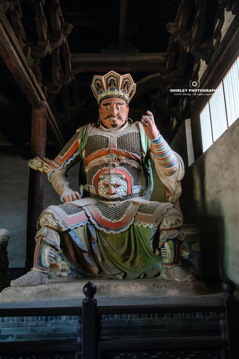 大殿兩側排列的便是善化寺大名鼎鼎的二十四諸天,融合漢傳佛教與遼金民族特色。這些彩塑每尊三米有餘,有的接近四米;神情靈動,沒有千人一面的僵硬感,也沒有高高在上之感,反而是人生百態和世俗情調的再現。