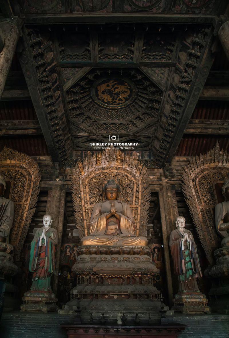 更爲罕見的是中軸線上三座大殿皆爲廡殿頂,可見這座寺院在當時社會中的地位,從城牆上俯瞰三座廡殿頂蔚爲大觀,唐風猶存。善化寺雖然建築體量不如華嚴寺大殿,但勝在完整,是我國保存最好的遼金建築羣。放眼全國,保存如此完整的中世紀寺院建築及佈局的恐怕只有大同善化寺和正定隆興寺了。