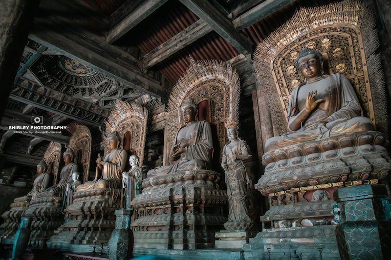 殿內正中塑有五方佛像,均爲金代原作,雖然經過歷代彩繪飾,但仍保留遼金塑像的藝術風格。