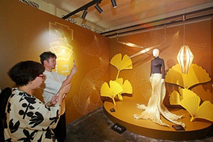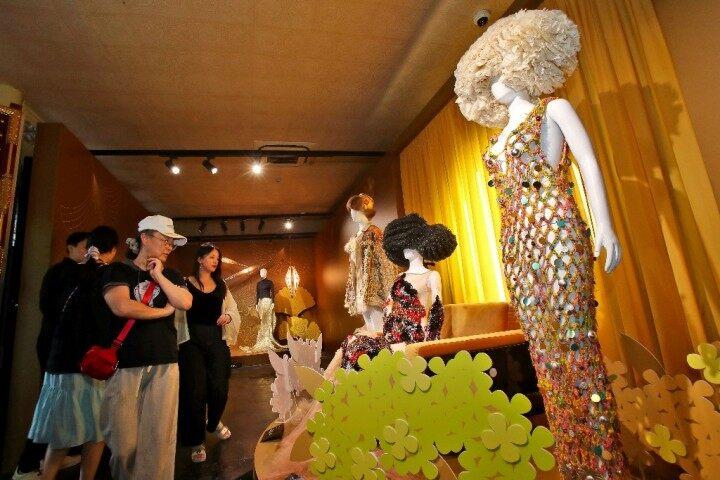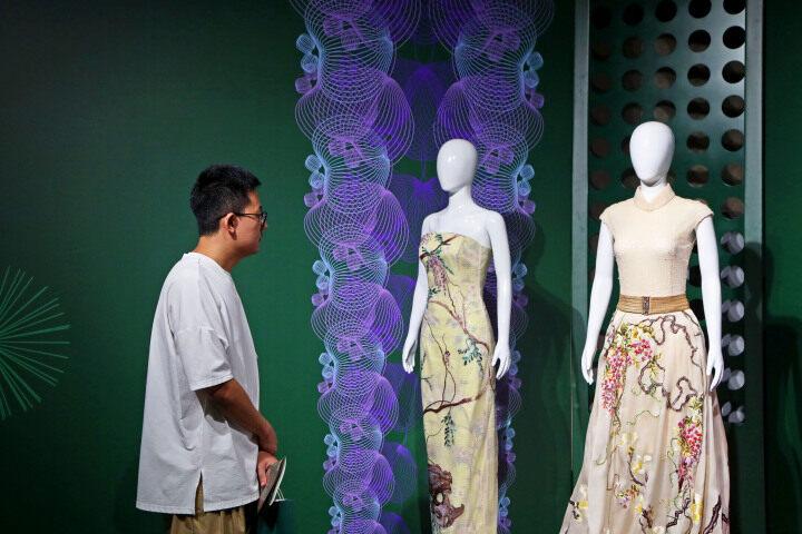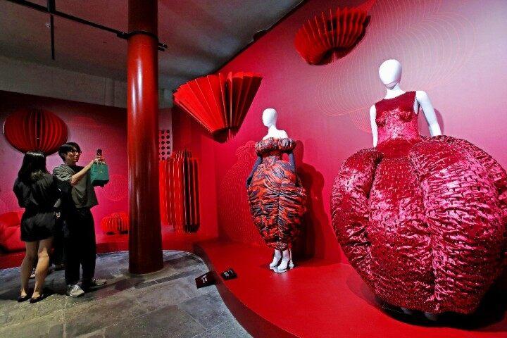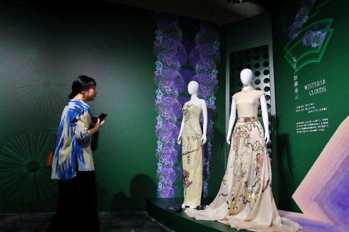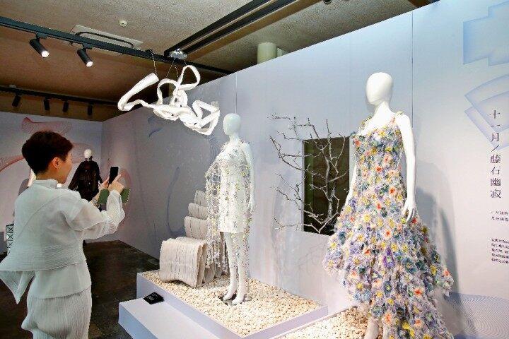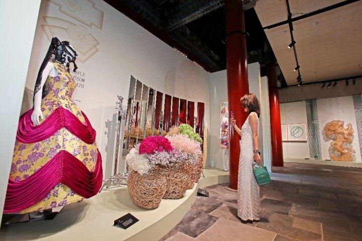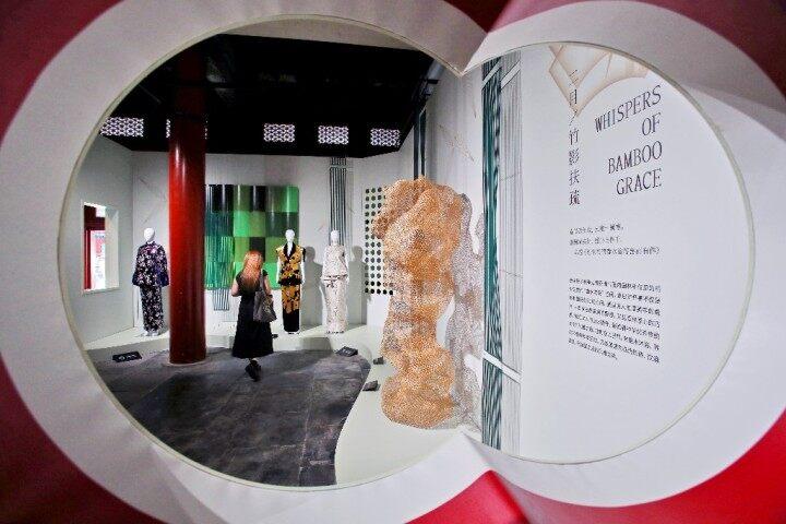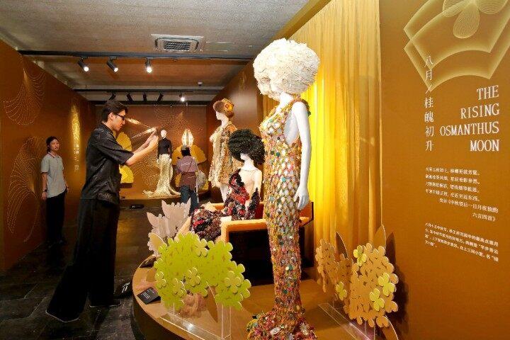 展覽中,服裝設計師與藝術家的作品呼應着恭王府一年四季的12種美學符號,反映了藝術家對中華優秀傳統文化的時尚解讀,展現出中式審美的獨特魅力。例如,藝術家錢利淮的竹編作品《哇哇叫的太湖石》源自東方文人傳統,展現了非遺竹編技藝的傳承與創新;設計師陳鵬的作品《人生定格》既紮根於東方文化基因,又以先鋒的視角重構現代設計語言,形成風格鮮明的美學表達;設計師馬凱的《春園雅集》通過爲山水、春蘭等傳統文化元素賦予色彩之美,體現了其對東方生活的洞悉。