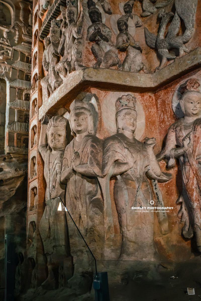 第5窟與第6窟爲一組雙窟,可惜的是我們去的時候第5窟因修繕暫停開放,裏面有云岡石窟最高大的佛像。