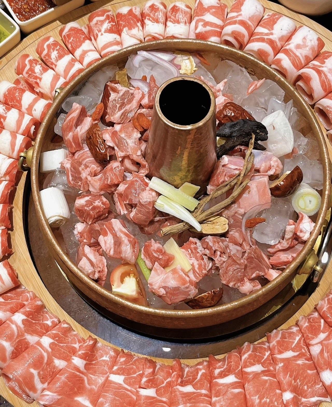 靈魂美食冰煮羊,用冰塊墊底煮羔羊肉,肉質鮮嫩無羶味,喫法是先喝湯再喫肉。