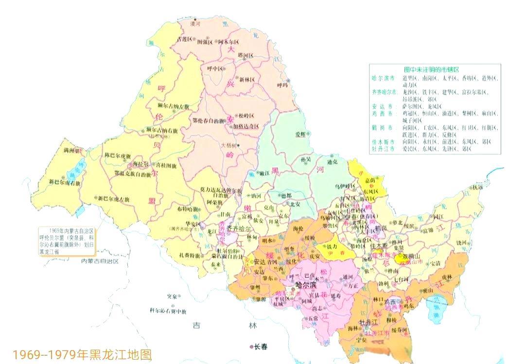 1969年,內蒙古區劃進行大調整,原屬內蒙古的呼倫貝爾盟,除突泉縣、科爾沁右翼前旗外,其他2市12旗全部劃歸黑龍江。