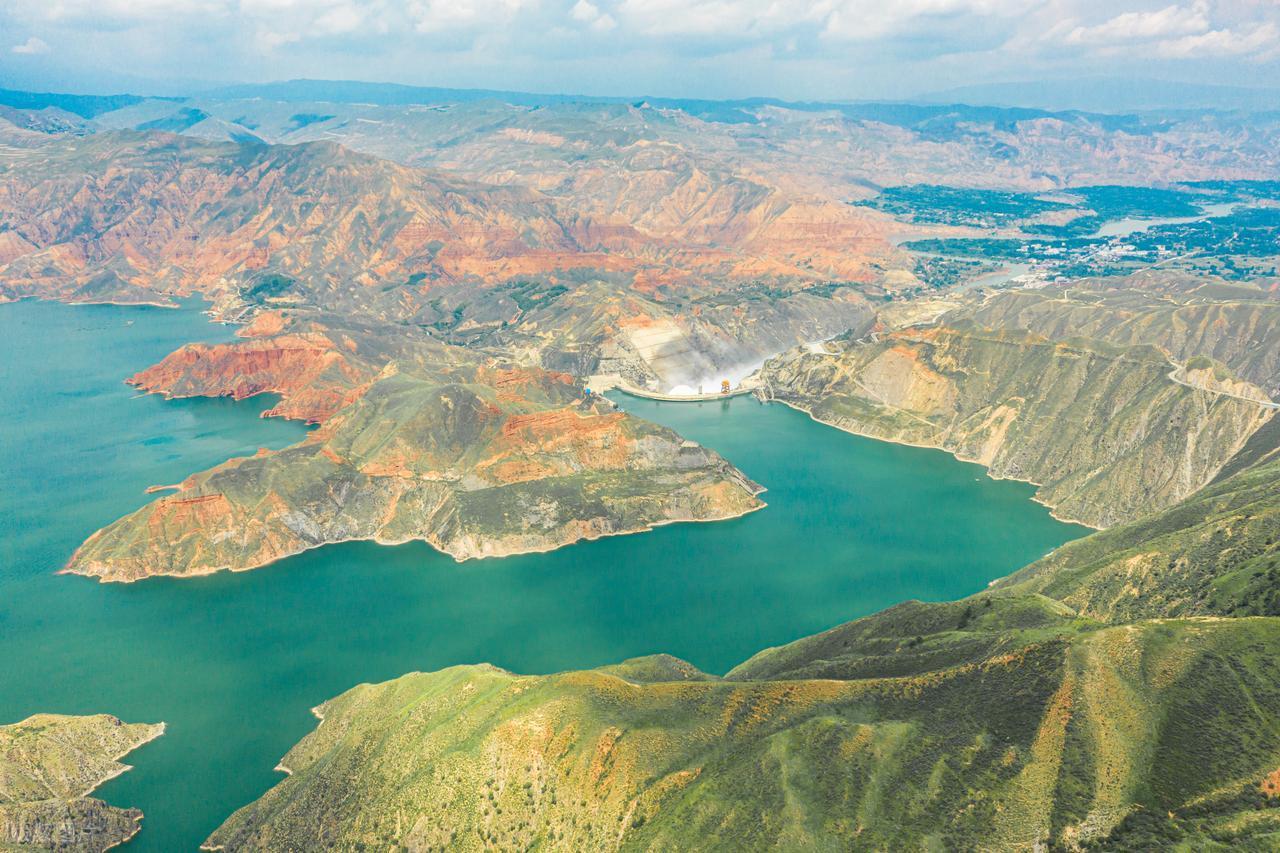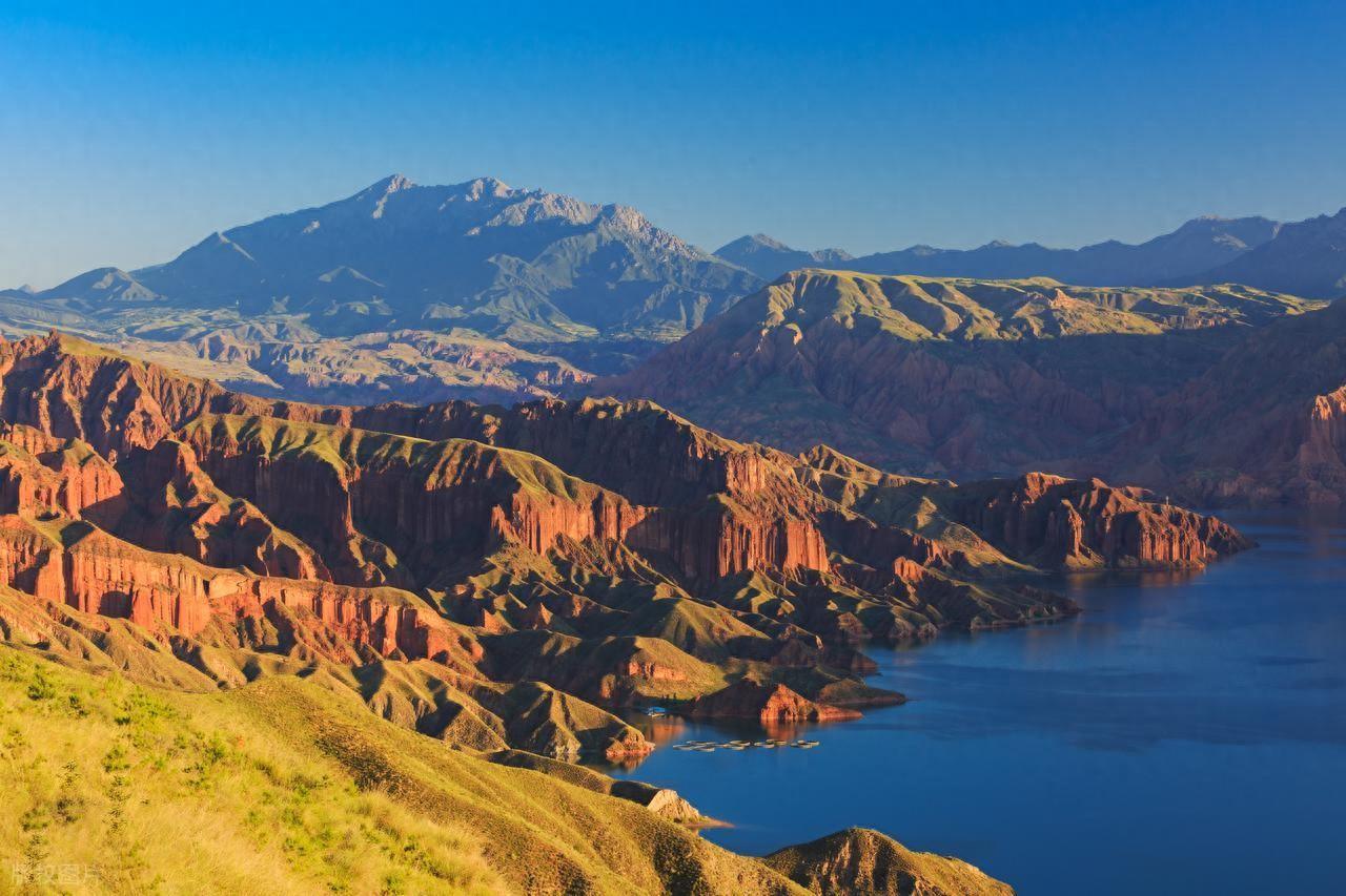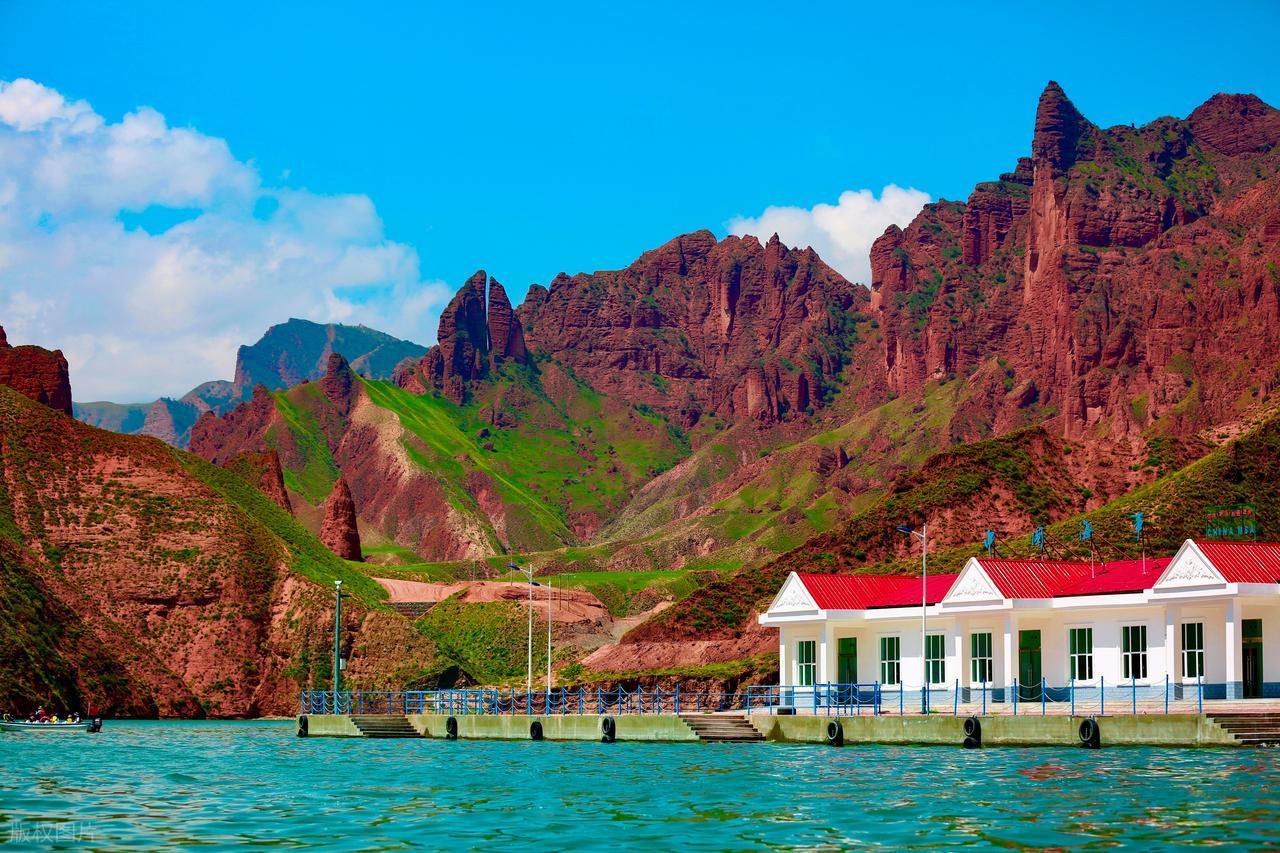遊客遊覽坎布拉景區大多會從北岸碼頭乘船出發,遊覽位於黃河上游幹流的李家峽水庫。水庫兩岸,赤紅的山脊在雨後更顯鮮豔,丹霞地貌山體像雕塑羣一般巍然矗立。在這裏,黃河水還是碧綠色,猶如一條翡翠的綢帶,在羣峯間蜿蜒流淌。