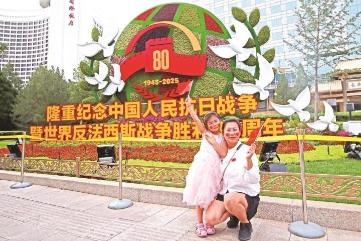 紀念中國人民抗日戰爭暨世界反法西斯戰爭勝利80週年主題花壇日前亮相北京長安街沿線,吸引了衆多市民遊客駐足觀賞、拍照打卡,見證中華民族的復興之路。