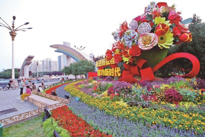 “美好明天”花壇被各種蘊含美好寓意的花朵包圍着