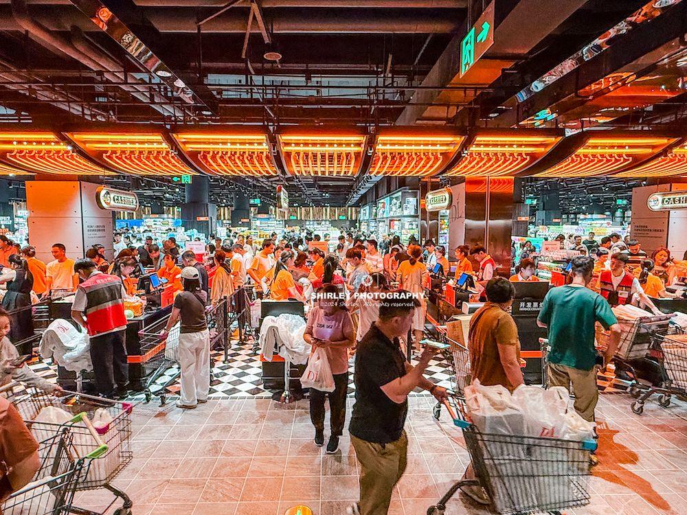 我們當天在超市裏沒逛太久,半小時都沒到。主要是客觀環境不支持,人擠人,車挨着車,多待不了一會。然後發現臨近中午,超市裏客流越來越多,結賬區那條通道已經人滿爲患。我們意識到大事不妙,艱難地往結賬區挪動,費了九牛二虎之力,才排上結賬的隊伍,人接近虛脫。最後結完賬離開地下一層的時候,竟有種刷副本大逃亡成功的感覺,太嚇人了。人多,真的很影響購物體驗,真難想象節假日會是怎樣一個狀況。