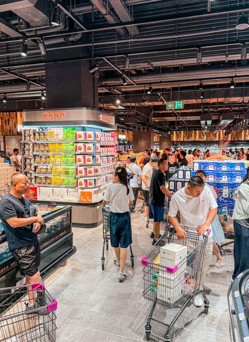 印象中我逛過人最多的超市,是上海2022年封控結束後的開市客,推車在冷櫃區完全推不動。而胖東來普通日的客流量,就超過了上海超市特殊時期的客流。