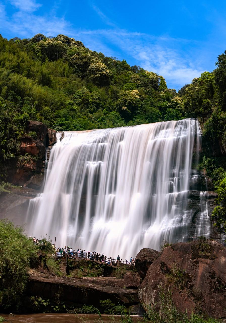 赤水大瀑布,中國丹霞地貌中最大的瀑布,高76.2米,寬80米,從丹霞絕壁上飛瀉而下,氣貫長虹;