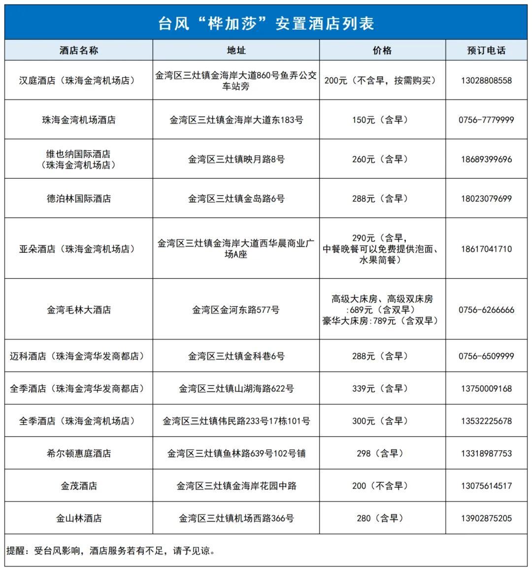 - 目前,金灣區已經協調區內部分酒店,按照臺風期間的優惠價格服務市民羣衆。