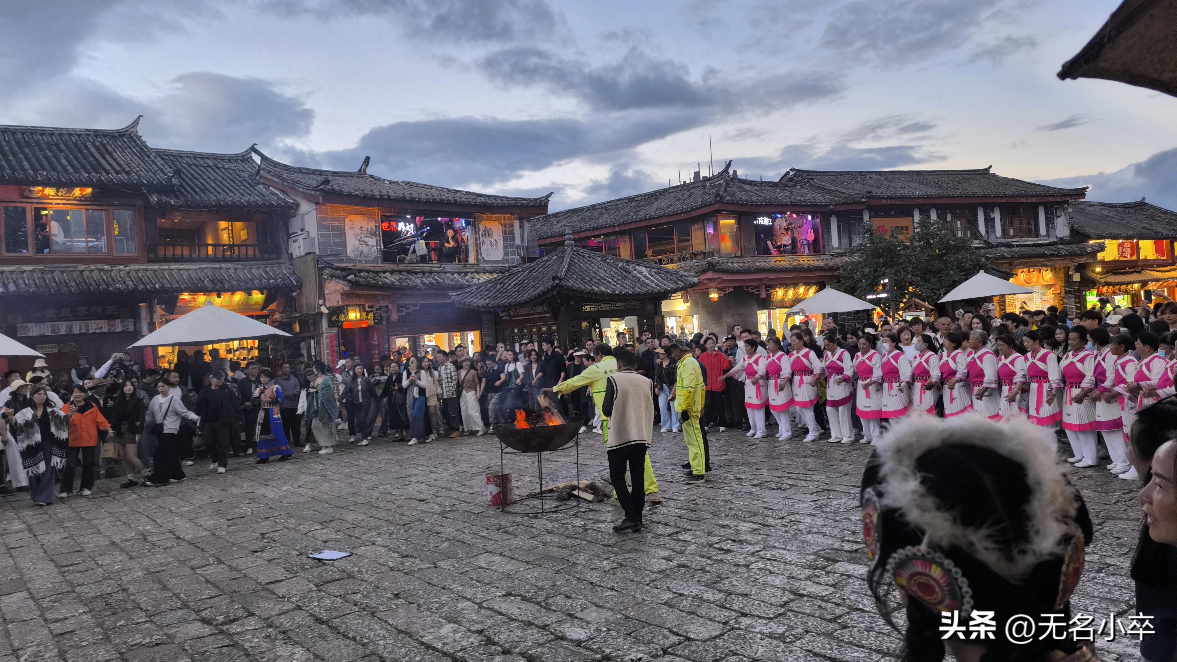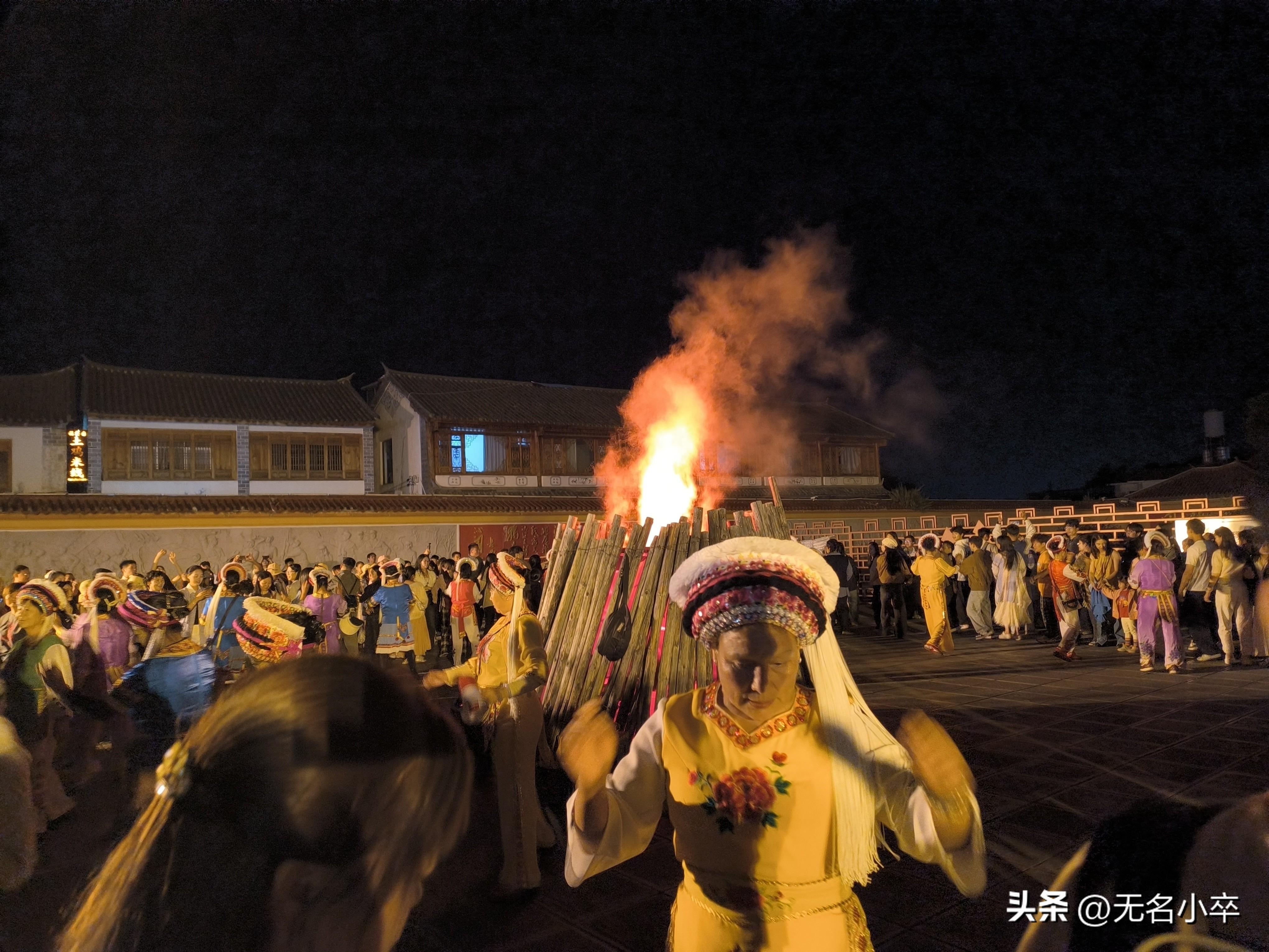 在雲南旅行的這一段時間裏,我發現這邊的人真的只要聽到音樂就會跟着音樂的律動舞動起來,無論是廣場上的日常即興,還是火塘邊的酒後盡興,或者是節日裏的全民狂歡,每一個場景都讓我印象深刻。記得剛來到大理古城的時候,聽說晚上8點鐘在古城內有篝火晚會,所以那一刻我對這個地方還是挺嚮往的,還特定的設了一個鬧鐘。等到8點鐘走過去的時候,看到這裏已經裏三層外三層的圍滿了遊客,跟我同樣有着期待。在篝火裏面,最內圈的就是當地的少數民族白族,他們穿着整齊的少數民族服飾,還戴着非常有特色的帽子圍成一圈,隨着音樂的律動,跳起來跳的非常整齊規劃,而且非常的有節奏感。讓很多遊客看着都衝動的加入了,但是很多遊客真的是四肢不協調,反正有樣學樣跟着來,雖然不是專業的,但是能參與其中,大家臉上都掛滿了笑容,圍着篝火,不斷的轉圈,跳起來看到遊客,這樣子跳真的是羣魔亂舞,但是絲毫影響不了,當地人整齊規劃地跳舞,在這一刻開心就好,快樂就好。