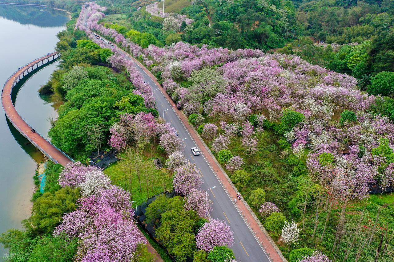 柳州也是一座浪漫之城。每年的三四月份 ,近30萬株洋紫荊同時綻放,整座城市淹沒在粉白色的花海中,浪漫、夢幻程度不輸任何以櫻花聞名的城市,這種大規模的城市綠化美化,極大地提升了居住的愉悅感。