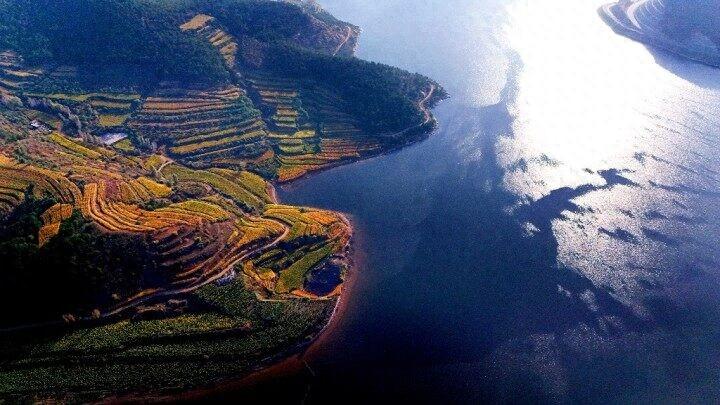 進入10月,位於內蒙古赤峯市寧城縣黑裏河鎮的紫蒙湖迎來了一年中最美的時節。湛藍色的湖水與兩岸金色的稻田、色彩斑斕的各色樹木、巍峨高聳的山巒共同構成了一幅秋日風景畫卷,吸引大批遊客前來拍照打卡,一覽山水相依的絕佳勝景。