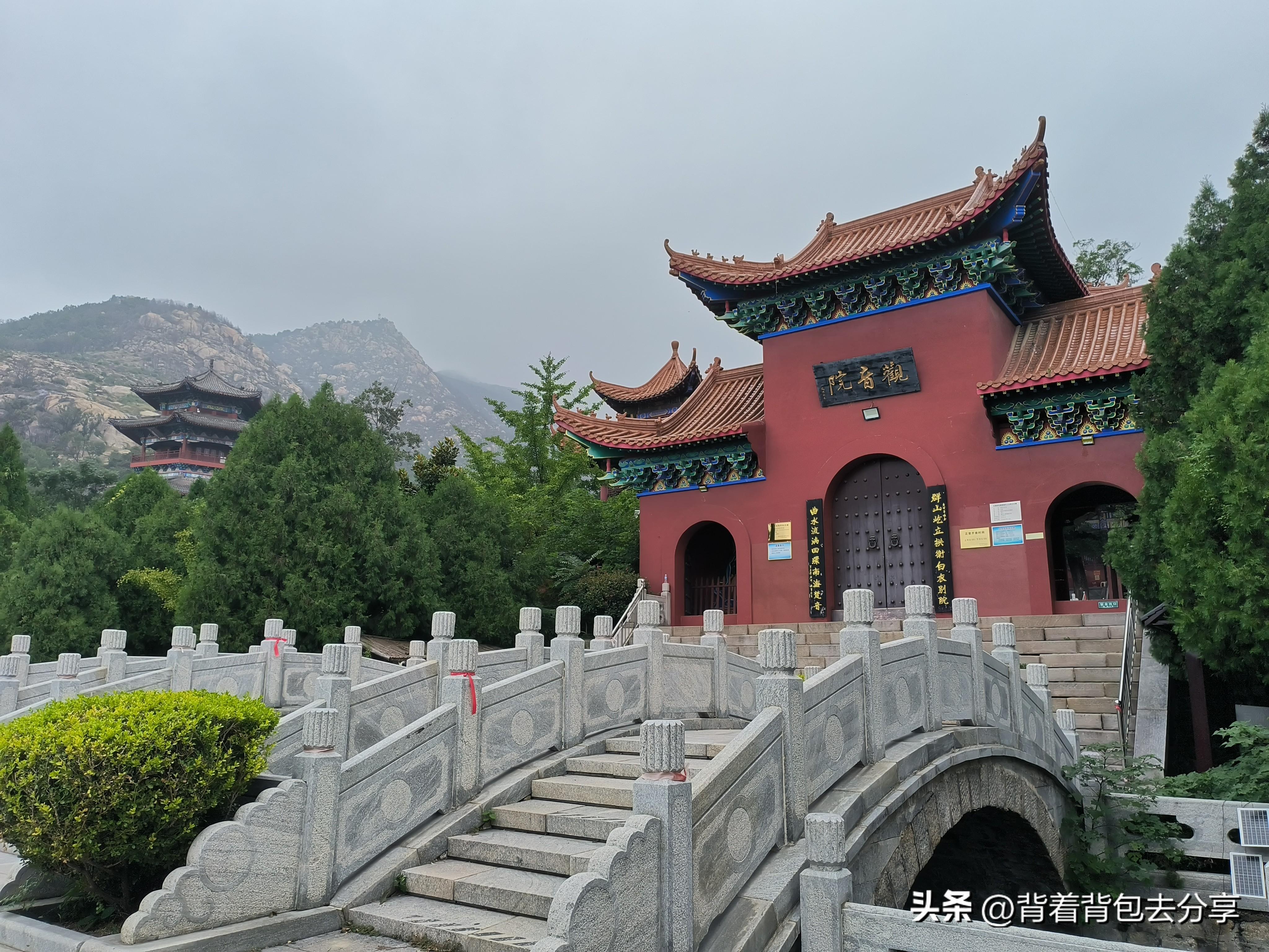 全山遊覽線路:從入出口處到漢武碑亭-梵音亭-觀音院-觀音閣,走中路到風動石-通天河-太平禪院-擁翠湖-雲谷寺-文昌閣-蓮花頂-晾經臺-天成廣場-天成觀音-觀海亭,最後返回入出口處,全程徒步上下山,近5個小時左右