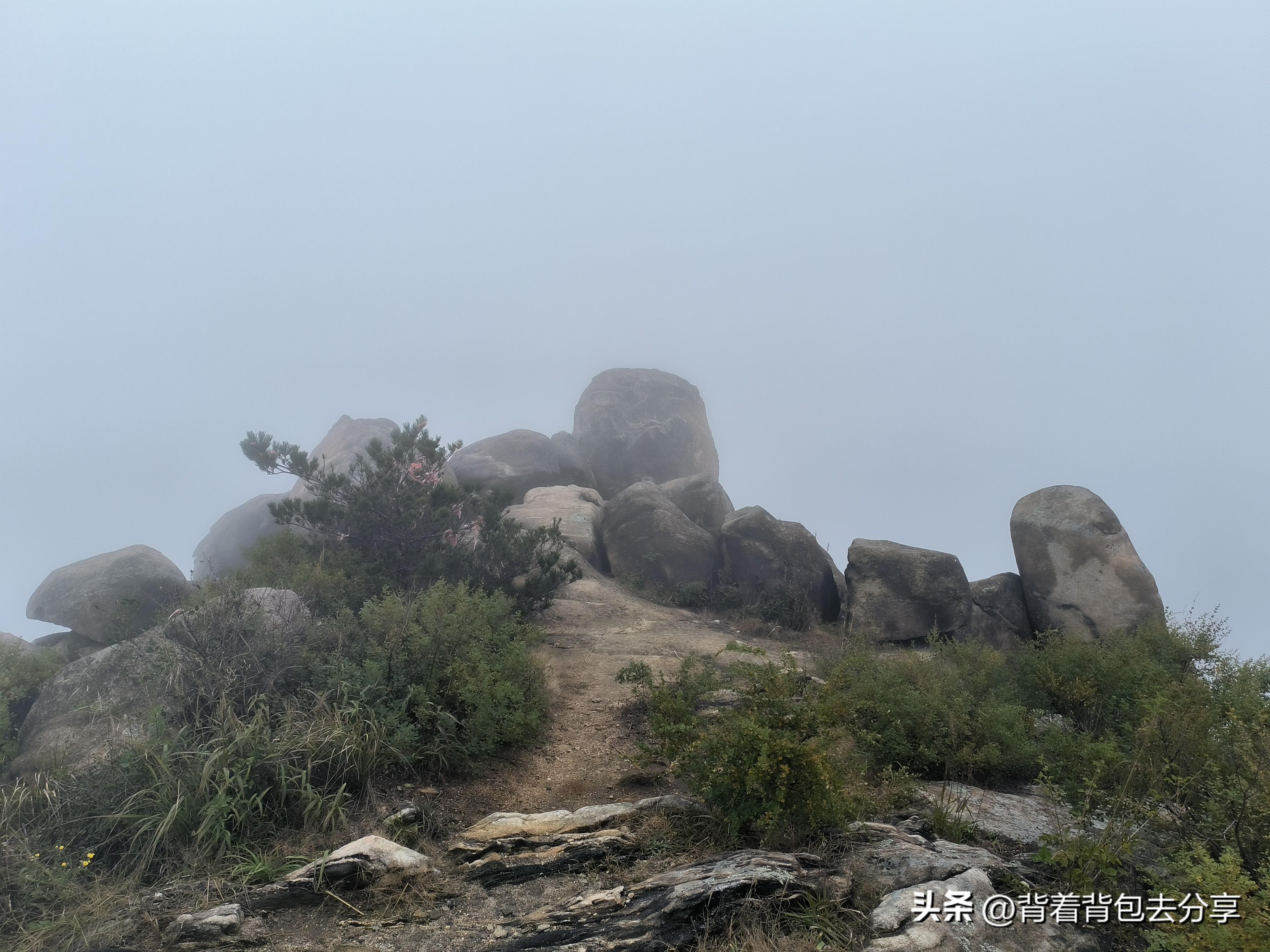 在去往蓮花頂時,剛好遇見工作人員,還要多久到達蓮花頂,而工作人員卻說,也就5分鐘左右,我們三人很快來到蓮花頂,而看到的景觀,則是霧茫茫一片,啥也看不到,此時,已接近中午,拿出泡麪和水杯,爲兩個小孩準備午餐,兒子是熱乾麪,女兒是番茄面,還好,自帶了一些熱水,開始爲兩個小孩準備,時隔半個小時,我們便沿景區指引提示天成觀音方向下山