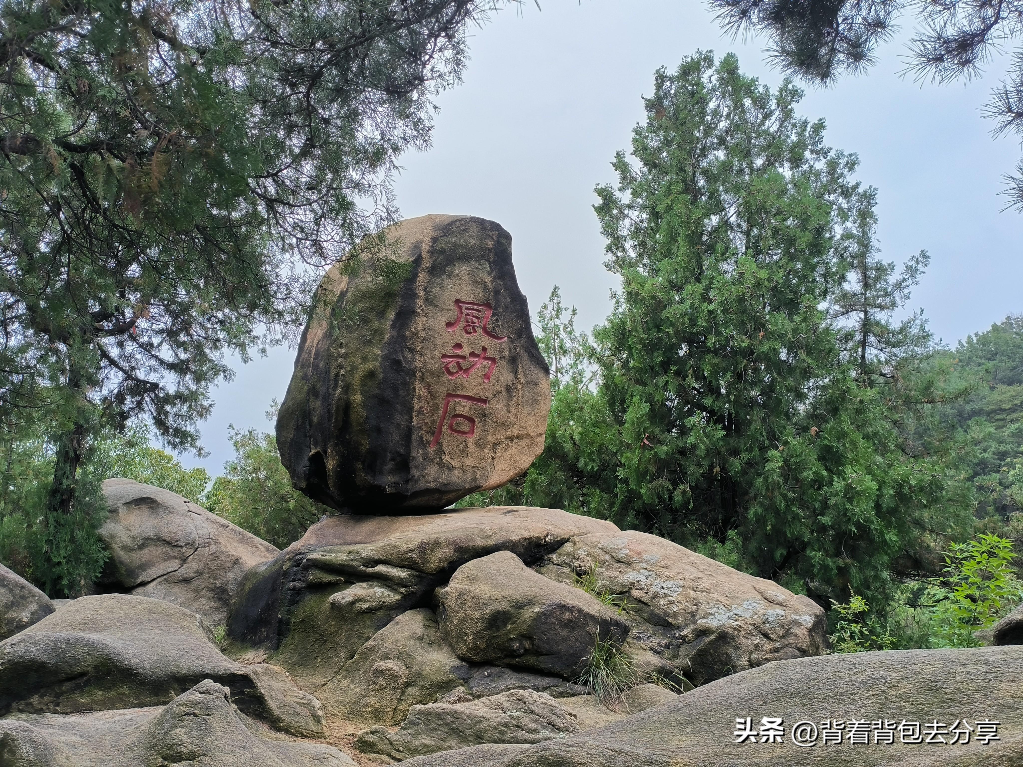 風動石危然立於石巖之上,路邊的這塊巨石,在地質變化時滾落於此,因風吹而動被稱爲風動石,又因其形似佛祖的大拇手指,好似在稱讚蓮花山好地方,也叫佛贊石,此時,走到這裏,女兒直接蹲在地上,準備不走了,說是累了,我說,這纔剛剛開始,加油吧