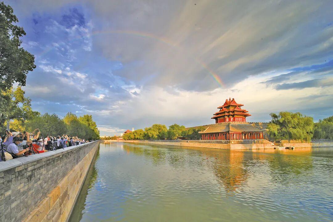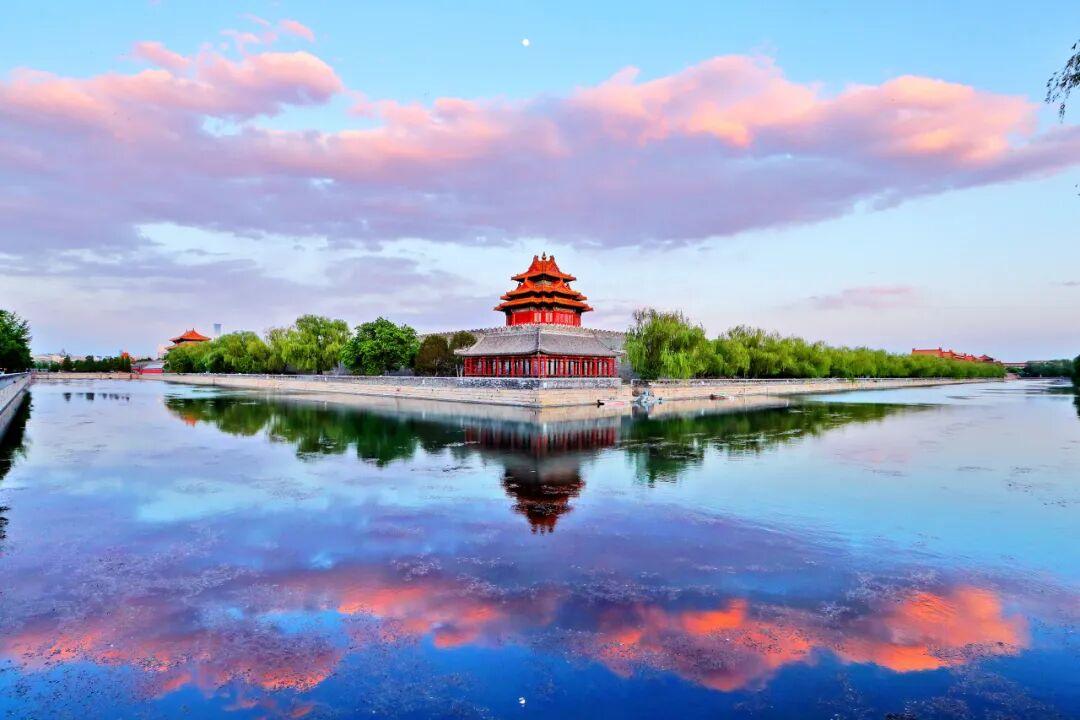 我印象最深的一次,是起了個大早和朋友們去拍朝霞。天際剛剛泛起魚肚白,角樓的輪廓在晨曦中顯得格外沉靜。漸漸地,第一縷金光灑在角樓上,緊接着,早起遛鳥的老人提着鳥籠慢悠悠地走過河邊,跑步的年輕人迎着朝陽揮灑汗水,他們的身影與金色的角樓一同定格成一幅流動的京城晨畫。那一瞬間,我按下快門,記錄下這一刻恆久的感動。600多年的紫禁城,就這樣自然而然地融入北京百姓的尋常一天,歷史的厚重與生活的煙火氣,在晨光中達成了完美的默契。