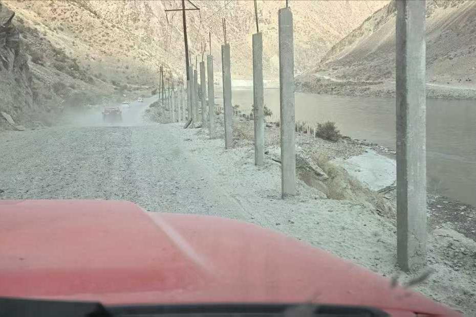 在塔吉克斯坦國家旅遊警察局警車護送下,那50多公里帕米爾河畔懸崖峭壁的砂石爛路,非常刺激,比十年前的丙察察尤過之而無不及。