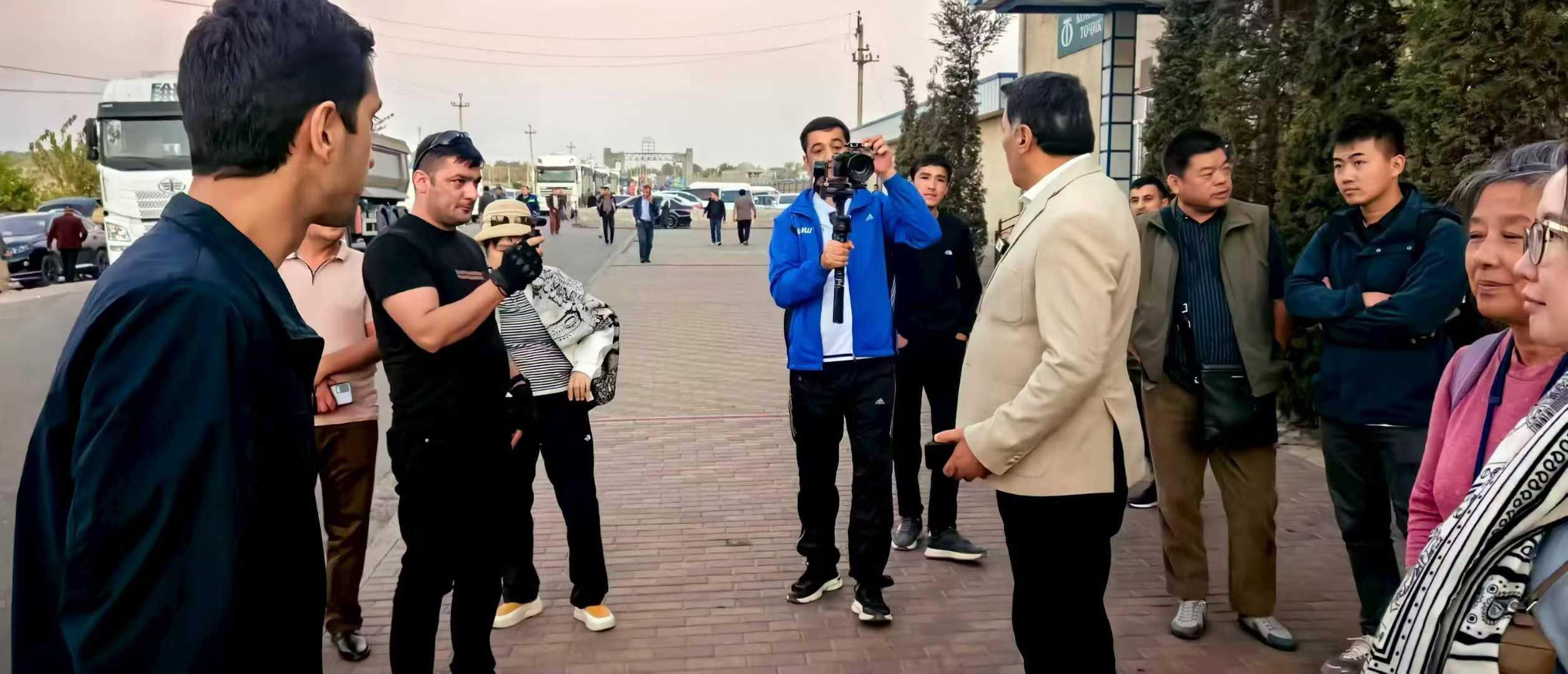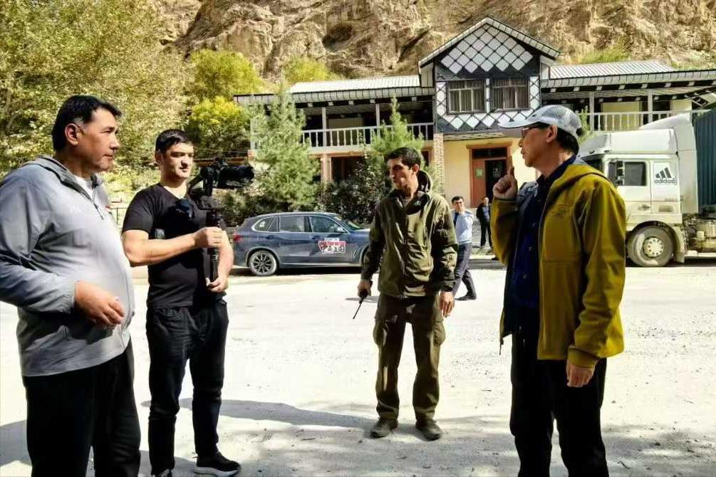 迎接中國客人的不僅有曾留學中國的塔國地接美農,而且還有其國家電視臺旅遊頻道攝像及記者採訪且他們將一路跟拍。