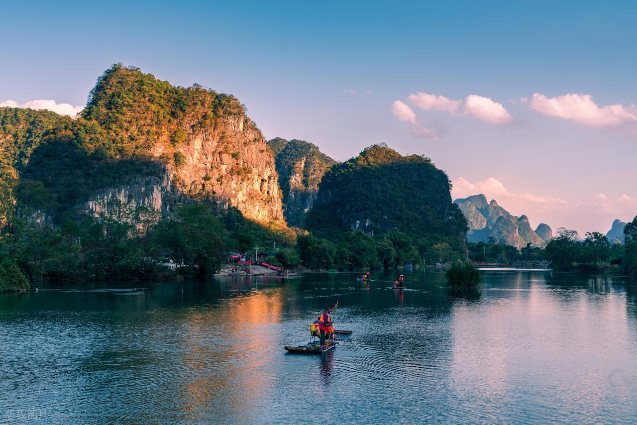 莫道春光好,秋水更宜人。當竹排滑破平靜的水面,駛向天琴湖那汪碧藍的深處,遊客只能用“哇哇!”的驚歎來表達當下的心情。在龍州紅軍古道景區·天琴壯寨,景區打造的自然親水空間,以及槳板等項目,爲遊客提供了秋日玩水體驗。