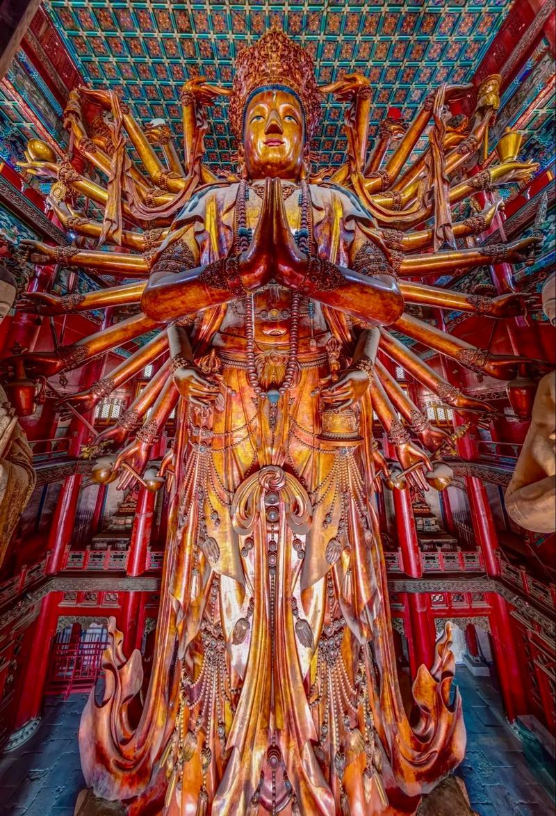 看點:1、摩尼殿,殿內倒坐觀音,被魯迅譽爲“東方美神”;2、轉輪藏,中國現存最古老的轉輪藏;3、龍藏寺碑,被譽爲隋碑第一;4、千手千眼觀音,世界上古代最高大的銅鑄觀音像;5、毗盧佛,明代萬曆皇帝御製的千佛繞毗盧銅像。