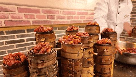 用竹蒸籠疊蒸,羊肉裹米粉與辣椒、花椒同蒸,搭配土豆或紅薯,鮮香微辣。