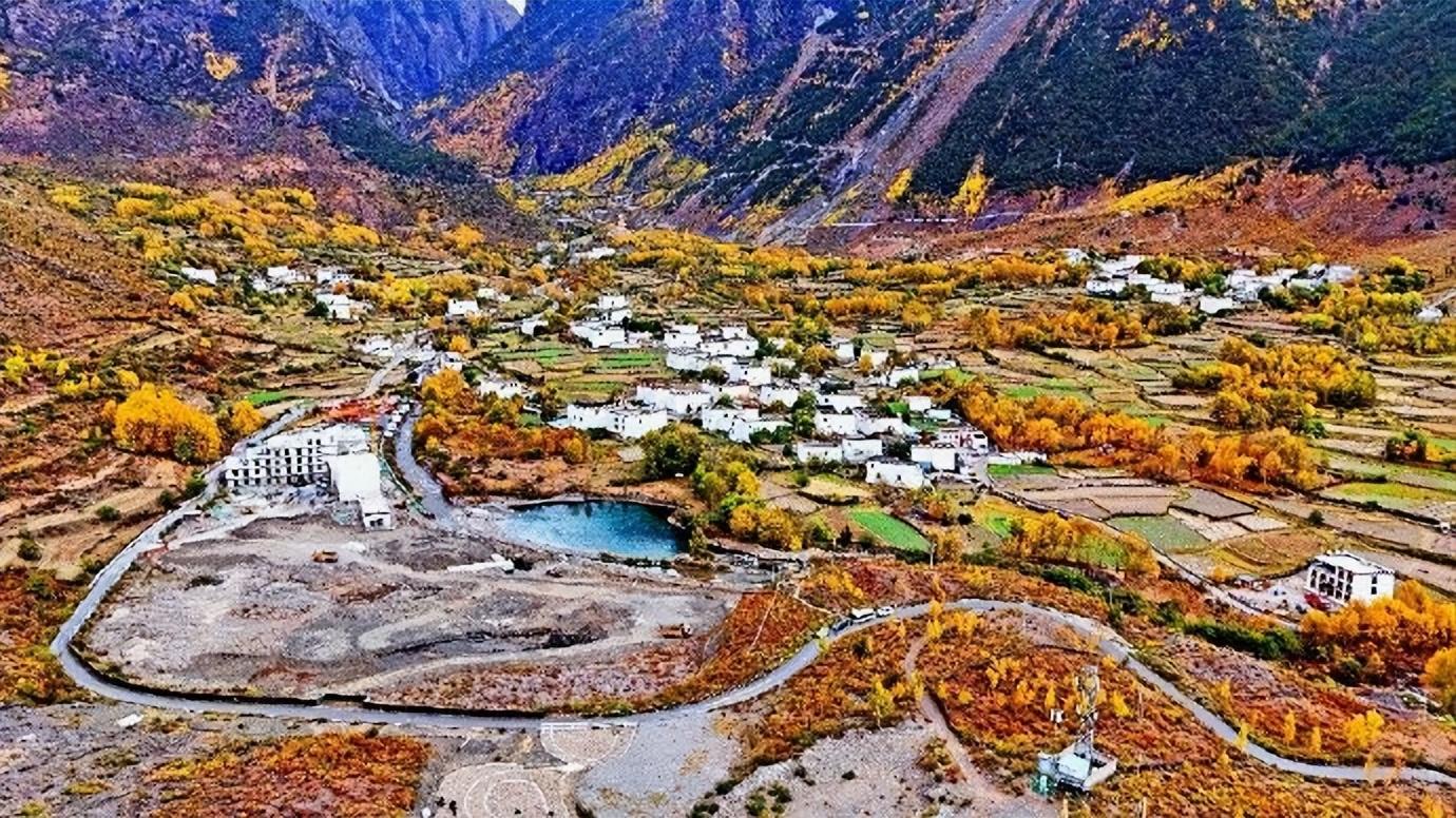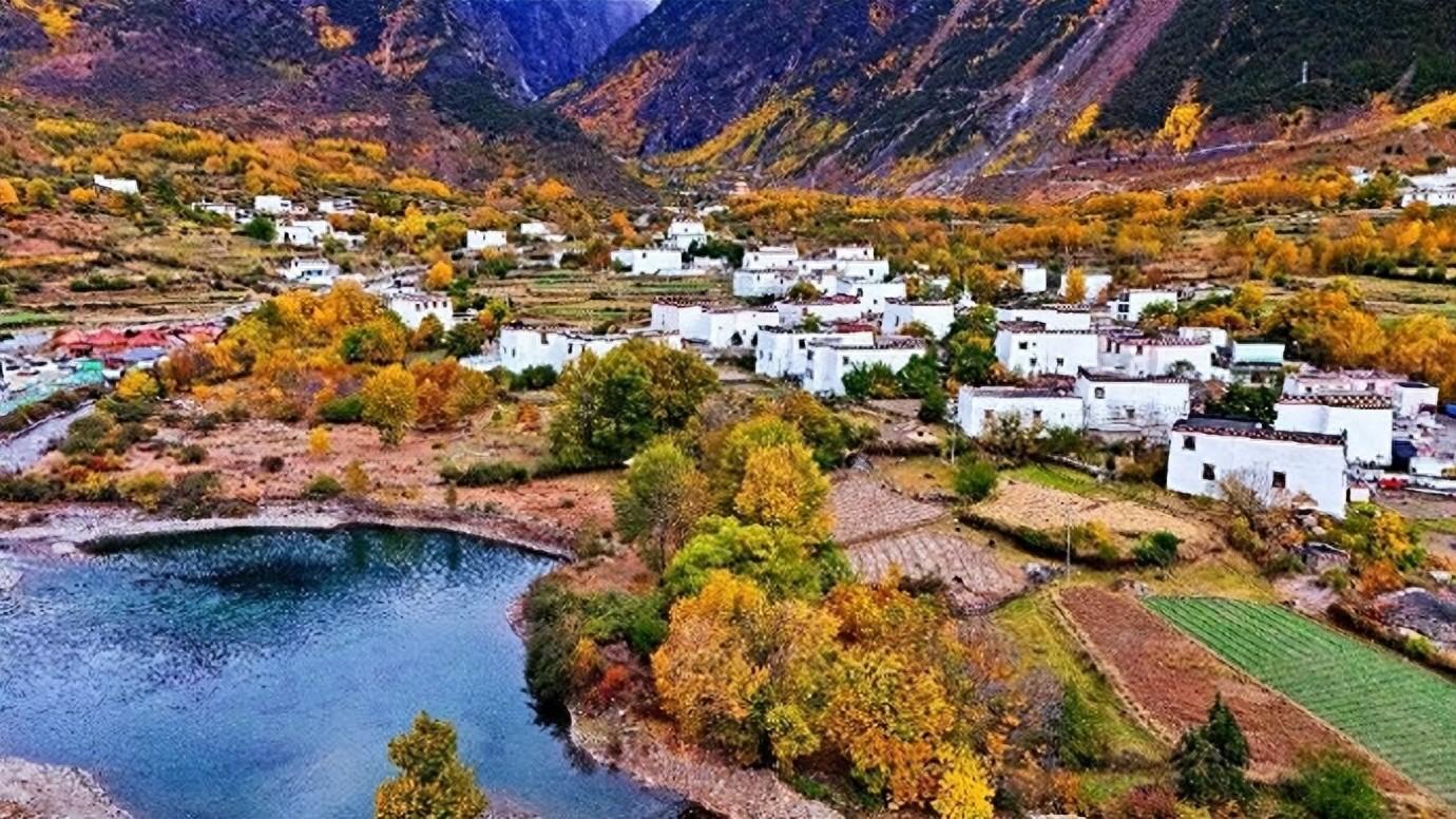 深秋時節,四川甘孜藏族自治州鄉城縣景色宜人,一棟棟獨具當地特色的白藏房與色彩斑斕的各色樹木、巍峨高聳的山巒、靜靜流淌的河谷溪流共同構成一幅充滿濃郁民族風情的田園山水畫卷,吸引大批遊客前來拍照打卡。