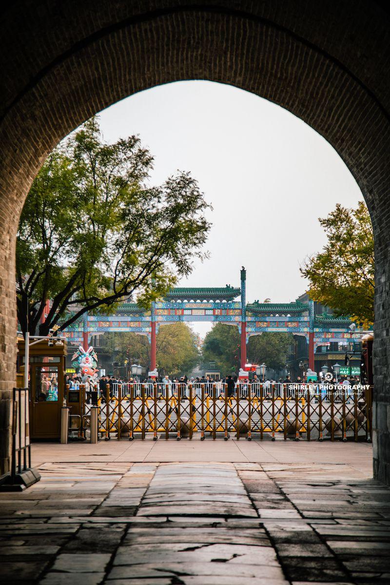 沿着樓內陡峭的木製樓梯盤旋而上,最吸引大家注意力的還是4樓的小窗,過去是用於瞭望禦敵的箭窗現在依舊是攝影師們的“瞭望窗”。最佳視野在四樓中間的那扇窗,正陽橋牌樓和前門大街盡收眼底,中軸線帶來的空間秩序感跨越數百年依舊震撼人心。這種古今交匯的強烈對比,是正陽門箭樓獨一無二的參觀體驗。