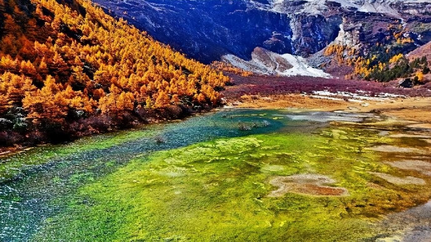 深秋時節,四川甘孜藏族自治州稻城亞丁景區秋意未減,依舊風光旖旎、色彩斑斕。景區內的彩葉林顏色變得更加厚重、濃郁,與遠處巍峨聳立的雪山、靜靜流淌的溪流,以及不時闖入畫面的小動物,共同構成了一幅渾然天成、無比靈動的自然山水畫卷。