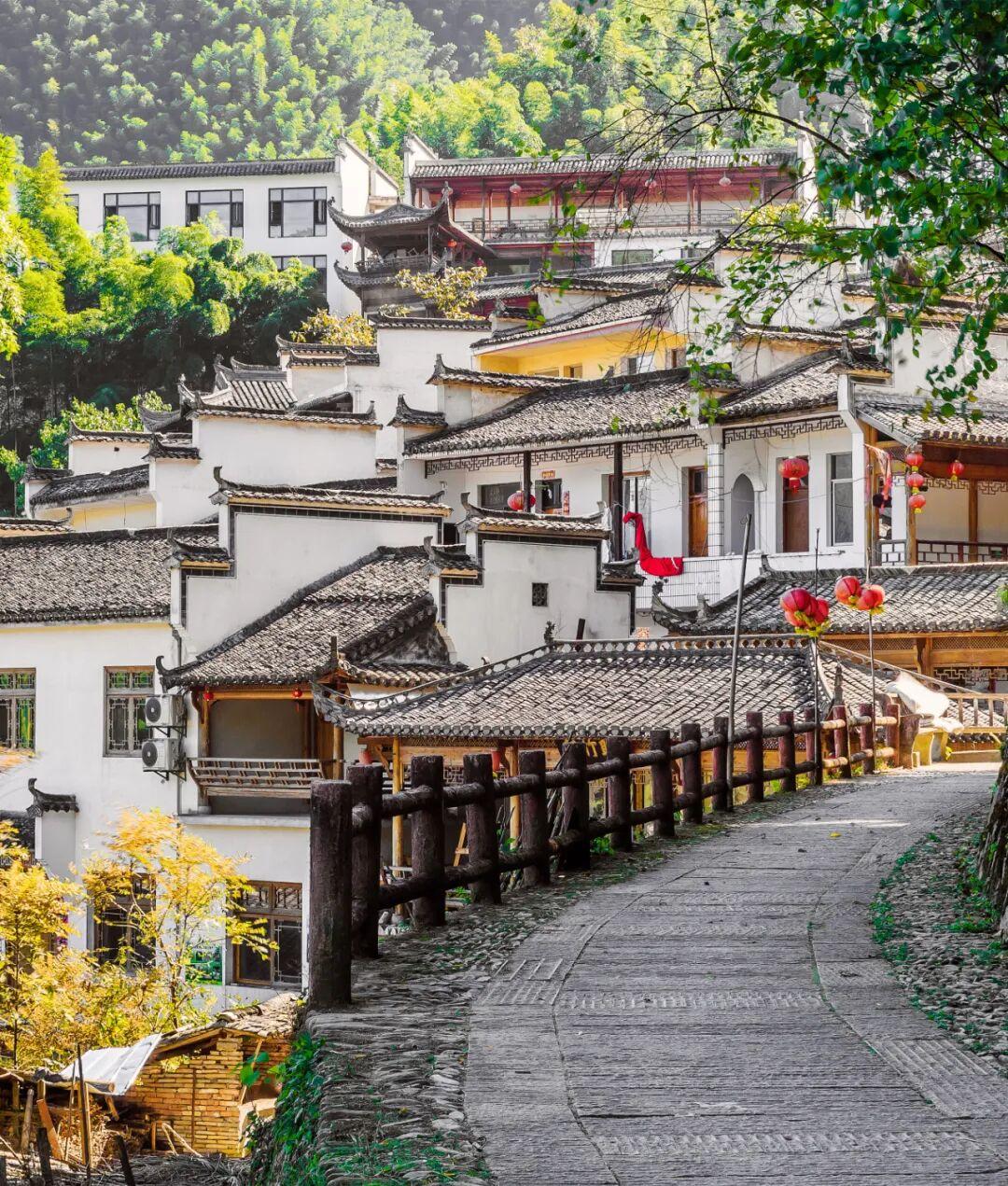 叢林間分佈着粉牆黛瓦的徽式建築,
