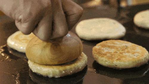 長滿菌絲的豆腐坯在油煎中煥發新生。