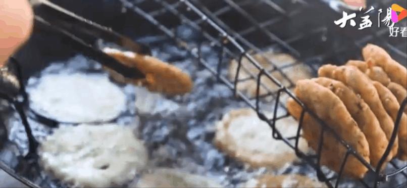 油碗糕,大米磨成的漿加入小蔥,攪拌均勻後放進滾燙的油鍋裏炸,現炸好的油碗糕金黃酥脆,一口下去蔥香四溢...