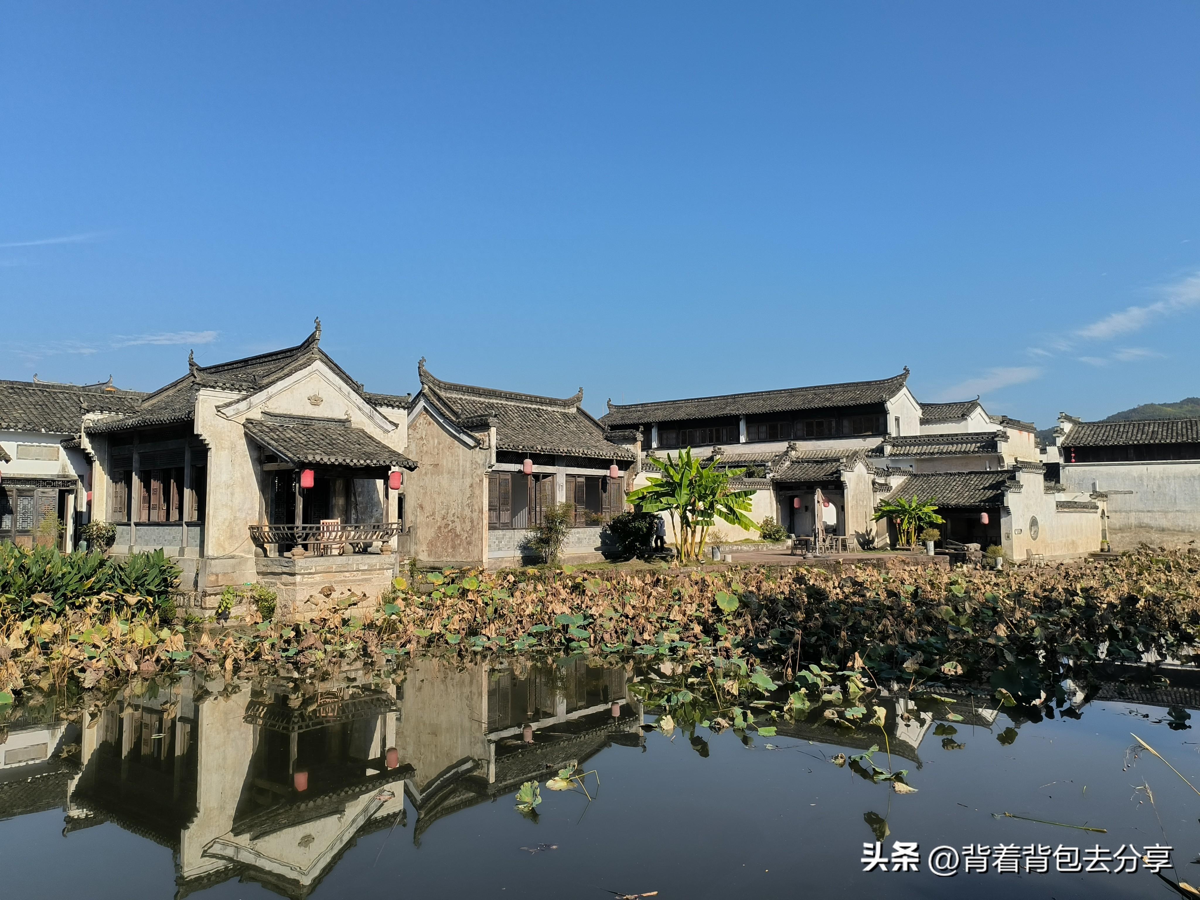 水口永興湖,雖是後天人工打造的,但湖水清澈,兩側白牆灰瓦,青山遠黛,尤其炎炎夏日,是欣賞荷花的地方,非常適合拍照打卡,呈坎的很多旅遊宣傳畫面,均來自於此處