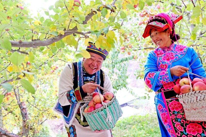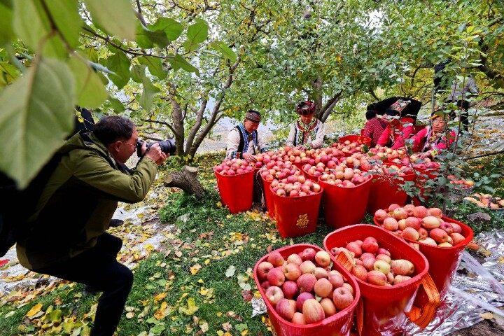 據瞭解,近年來,南新鎮依託蘋果、李子等果品資源和特色羌族文化,大力發展鄉村旅遊,推出一系列採摘體驗遊項目,努力把資源變成資產、把農產品變成旅遊商品。其中,安鄉村種植的蘋果以皮薄肉厚、味甜汁多、含糖量高著稱,成爲當地的特色名片,也讓安鄉村成爲頗受市民遊客喜愛的鄉村旅遊打卡地。安鄉村緊抓機遇,在線上平臺推出蘋果禮盒,並通過網紅達人帶貨等方式,讓蘋果暢銷全國。“線下采摘遊+線上直播帶貨”的協同發展模式,讓安鄉村一度滯銷的蘋果變成致富“金果”,也讓當地村民實現了增收。