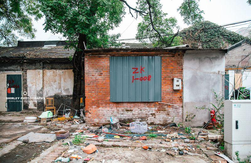 今年7月,孚王府開始騰退,直到現在還能在牆上看到之前的騰退告示。原來的臨建違建拆除後,到處是人去樓空的場景,王府裏一片狼藉,形同廢墟。