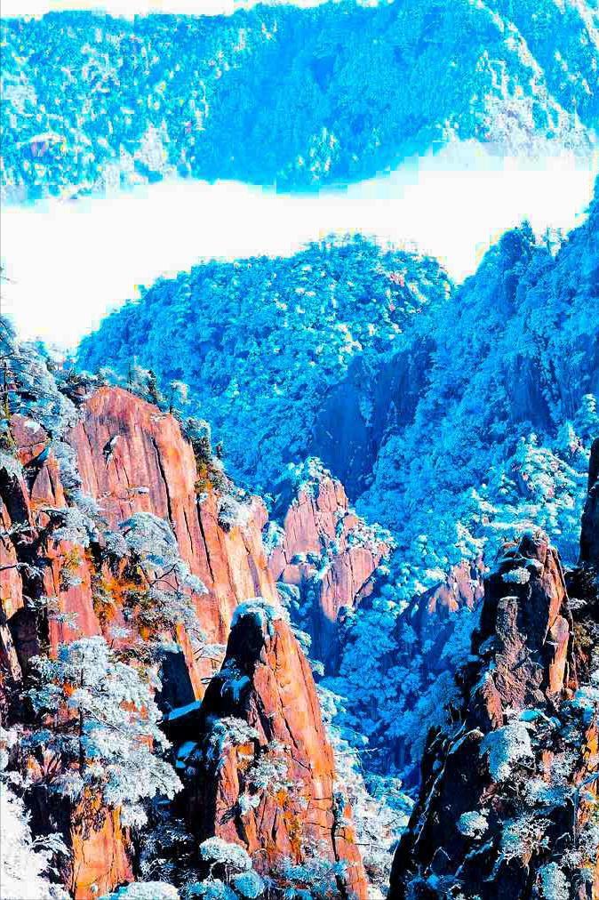 冬日的黃山有雪松、冰掛和雲海。始信峯上的“琴松”雪後更顯蒼勁,是拍攝黃山奇松與雪景的經典位置。